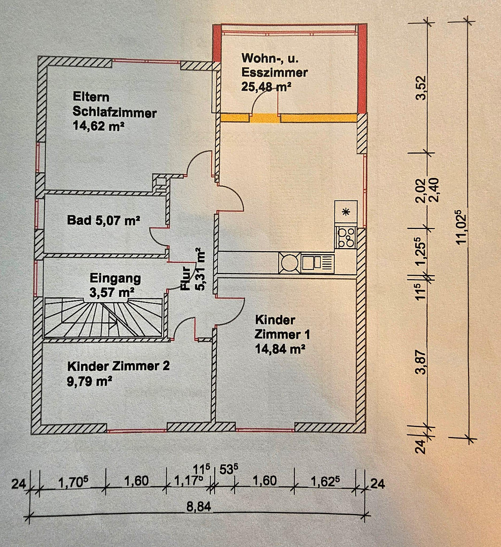 Can be used as a basement (e.g., 1 room per rented apartment) or offered as additional space for the ground floor apartment. Expansion of the ground floor from approximately 80 m² to approximately 130 m² is possible. Spread across a property of approximately 256 m², the total usable area is approximately 248 m² over four levels (basement, ground floor, 1st floor, attic). According to the current energy certificate, the building is designed for at least 3 apartments, offering maximum flexibility for multi-generational living or as an investment property. Parking included: