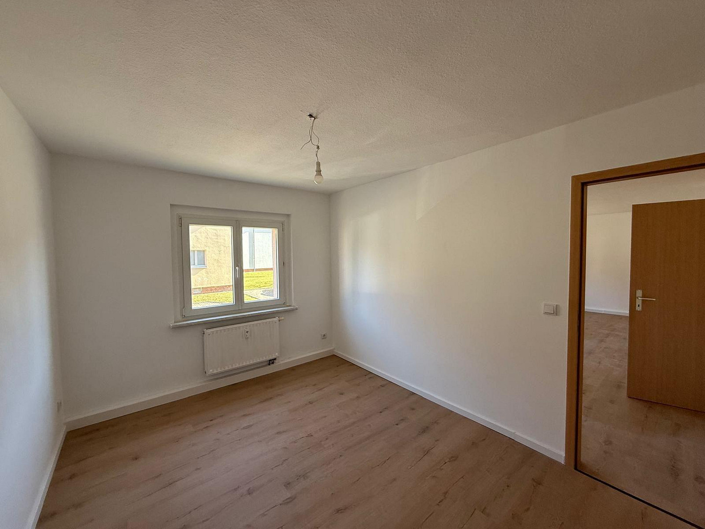 Uhlandstraße 1, 04442 Zwenkau – SachsenThis freshly renovated 3-room apartment is located in a well-maintained apartment building and is available for occupancy immediately. Throughout the apartment, high-quality designer flooring with integrated sound insulation has been installed. The walls have been freshly plastered, creating a bright and modern living atmosphere. The bathroom has also been upgraded with new, high-quality fixtures and a new sink, including a cabinet.