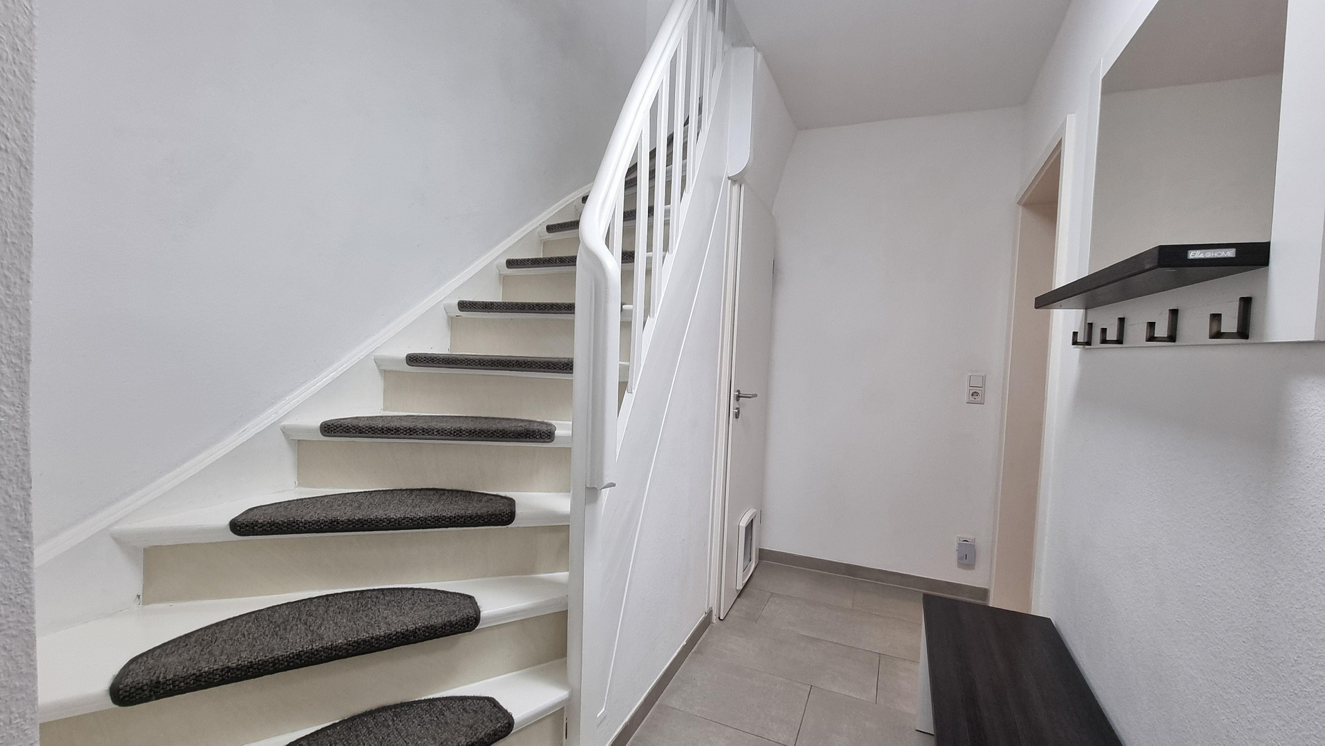 48599 Gronau (Gronau (Westfalen)) – Nordrhein-WestfalenThis well-maintained terraced house, built in 1955, impresses with its well-designed layout and offers a surprisingly spacious living experience in its compact footprint. The 1.5-story house is ideal for couples, small families, or individuals seeking their own home with a garden. The living space is approximately 72 square meters, complemented by a usable space of approximately 198 square meters, providing additional opportunities for storage, hobbies, or utility areas. In total, there are 5 rooms. On the ground floor, there is a separate toilet, and in the attic, there is a shower room. The house is fully basemented and has direct access to the garden, making the basement particularly practical. A true highlight is the beautiful garden with a lawn. A spacious, covered terrace offers a relaxing space – with a pleasant view of the greenery. In the back of the garden, there is also a garden shed, ideal for storing equipment or as additional storage space. The property also includes two parking spaces. The white, corner-style built-in kitchen remains in the house. It is very well-maintained, and all appliances are in working order. Approximately 8 years ago, the house was extensively renovated, and it is still in very good condition today. The flooring, made of tiles and modern, high-quality laminate, provides a contemporary and easy-to-maintain finish. The property is heated by a gas boiler. An energy performance certificate has already been requested and will be presented at the latest during the viewing.