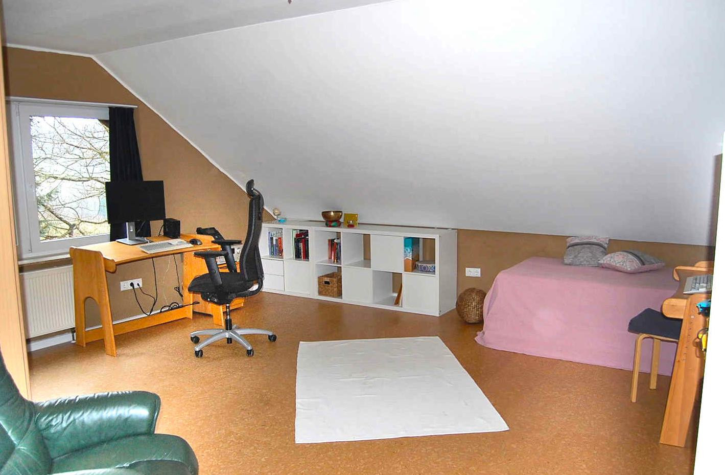 Dorfstraße 17, 53547 Breitscheid (Goldscheid) – Rheinland-PfalzThis idyllic property, with excellent motorway access (approximately 5 minutes away), offers generous living space with many possibilities for customization. The house was built in 1980 using solid construction methods and has been extensively renovated in recent years, with a focus on ecological building principles and healthy living. It features three floors, including a ground floor level accessible from the garden, a main floor, and an attic, with a total living and usable area of approximately 410 m². The large plot of land, covering over 9800 m², offers a breathtaking, unobstructed view of meadows, forests, and the adjacent valley. The property is extensively landscaped with mature and newly planted fruit and nut trees, as well as newly established hedgerows of wild fruits, creating a permaculture-style forest garden. The building distances to neighboring properties are significant (23m to the south). The planned landscaping includes space for a swimming pond, walkways, and a pavilion within a circle of beech trees. There are many areas in the garden that offer peace and relaxation, shielded from neighbors. Possible uses:
