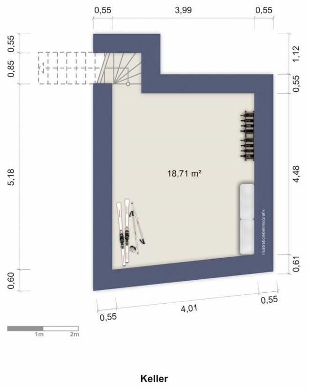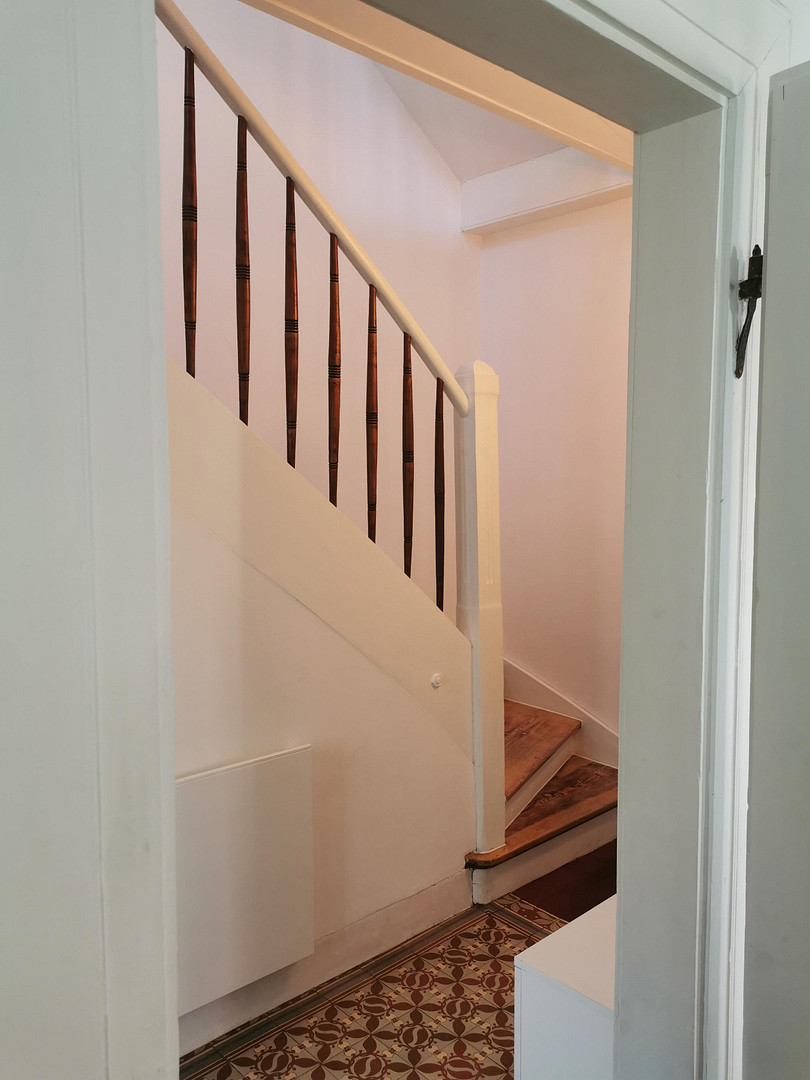 Furthermore, the house has a vaulted cellar. The original tiles from 1890 were preserved in the entrance area. In addition, a shared cellar is available in the adjacent building.