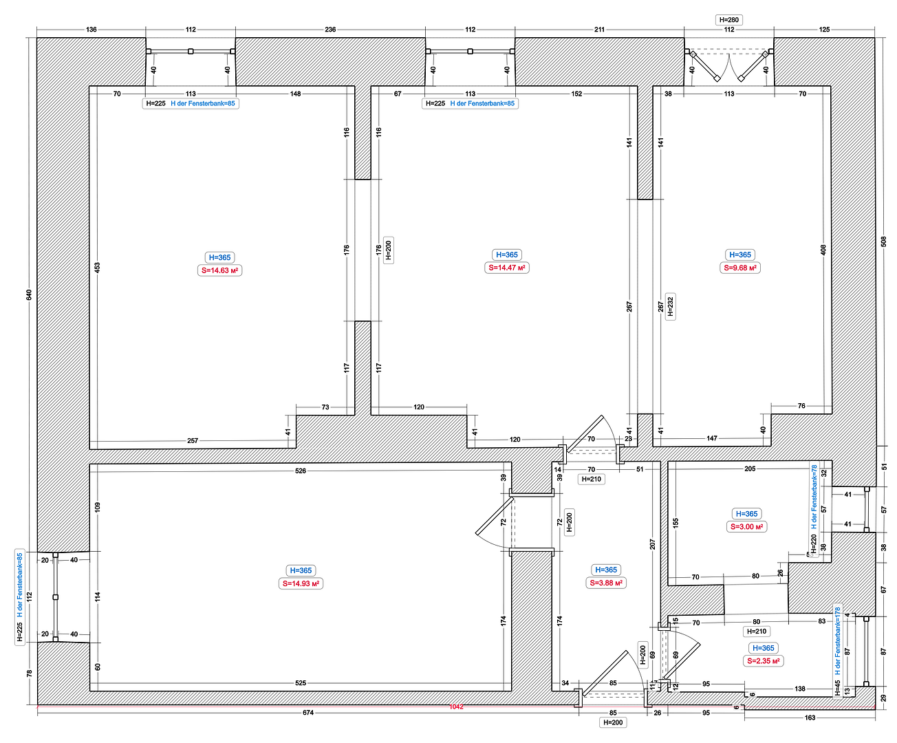 - Ceiling height: 3.65 meters
