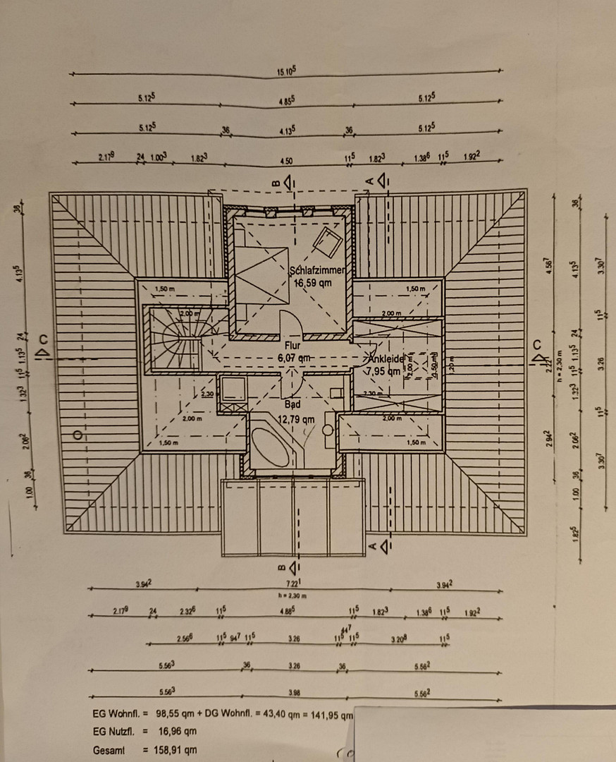 The upper floor is largely undeveloped, except for a large room. All connections (electricity, water, sewage, underfloor heating) are installed, and drywall work has already begun.