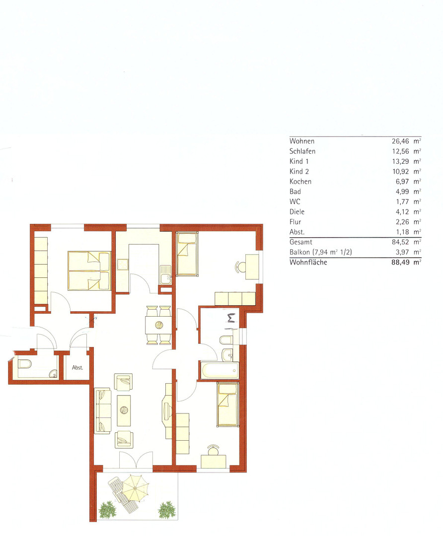 81375 München (Hadern) – BayernThis bright and well-maintained apartment is located on the 2nd floor (with elevator) in a quiet residential complex, situated away from the street. The spacious living/dining area is the central hub of the apartment and features direct access to the covered balcony (approximately 8 square meters), which faces south and overlooks the green courtyard. The kitchen is adjacent to the living/dining area, but could also be easily separated with minimal effort. The built-in kitchen, including a refrigerator, dishwasher, oven, and ceramic hob, is included in the purchase price. The bright bathroom is equipped with a bathtub with a shower screen, a sink, a toilet, and a connection for a washing machine. There is also a guest toilet in the entrance area. The 3 bedrooms all have large, floor-to-ceiling windows. A practical storage room is located in the entrance area and can be secured with a door. The apartment includes one dedicated parking space, providing direct access to the building, as well as a large, lockable storage cellar. A communal bicycle storage room and a drying room (with the additional possibility of using a washing machine and dryer) are also available. A large children's playground with a sandbox is located in the spacious outdoor area.