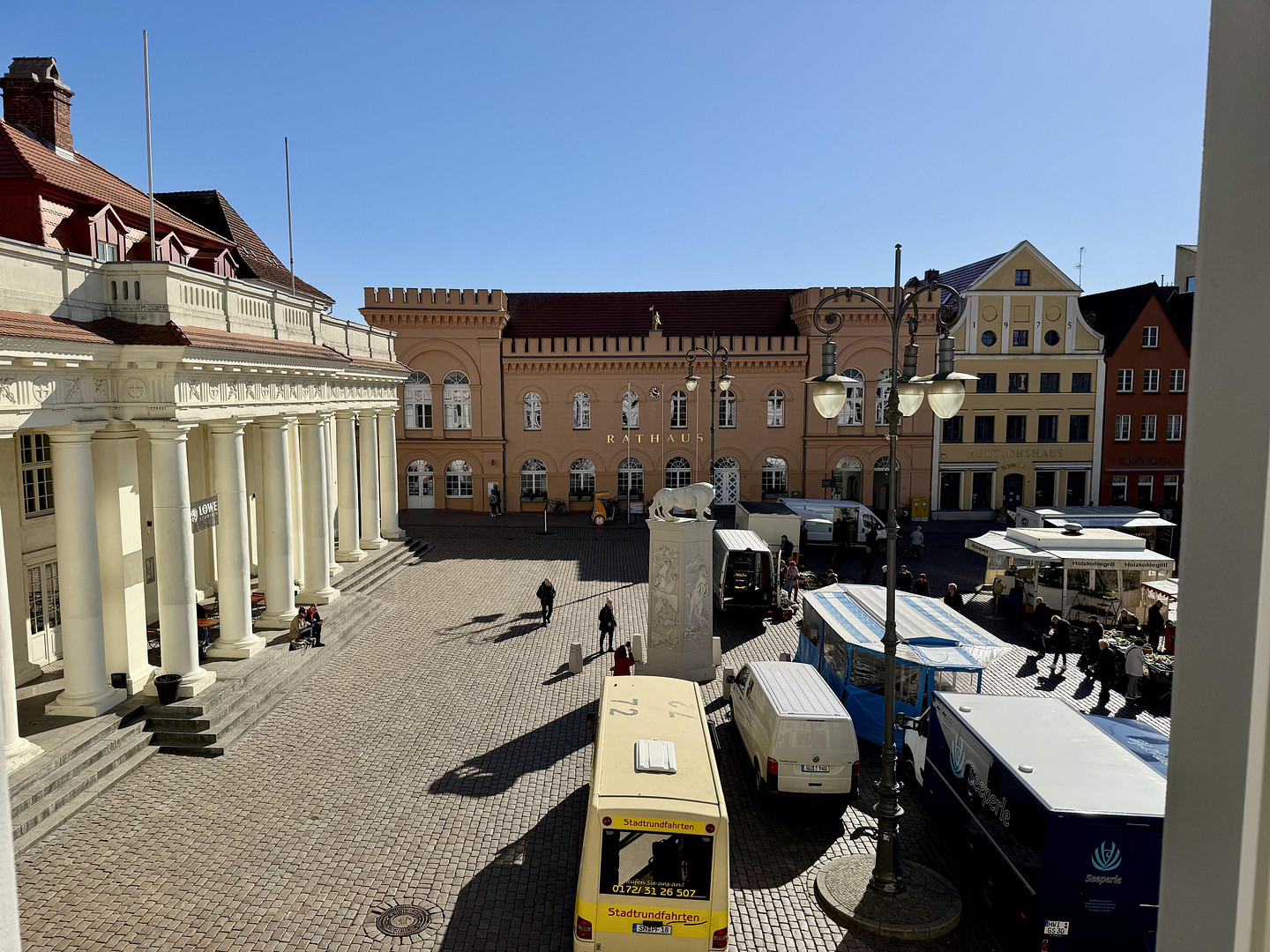 The apartment is located directly on the market square in the historic old town of Schwerin. Shops, bakeries, supermarkets, banks, and other amenities are all within easy reach.