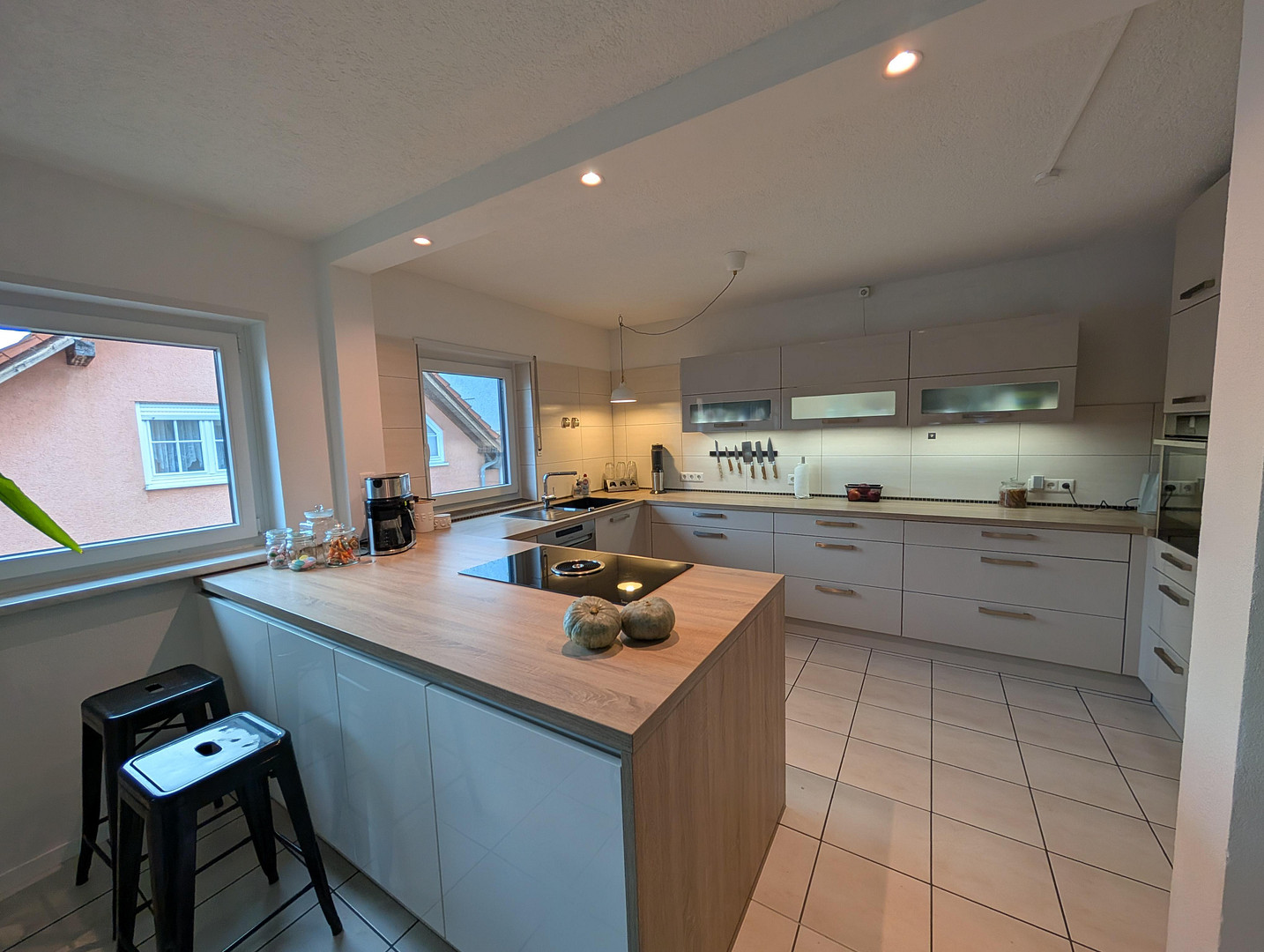 For example: gas condensing boiler, wood-burning stove with afterburning control (2017); kitchen (2019); photovoltaic system (10 kWp) including battery storage and wallbox (2020); new triple-glazed windows, skylights, and roof repairs (2022); modernized interior doors and bathrooms. Connectivity: 1000 Mbit internet (cable) ensures smooth home office work.