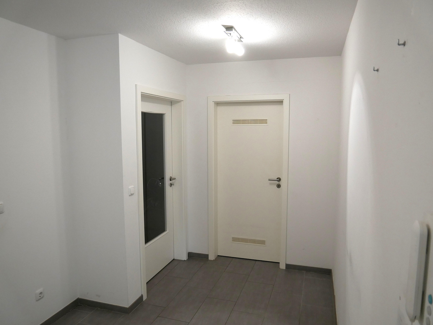 This accessible, age-friendly ground-floor apartment is reached via a spacious entrance area. The very bright and quiet apartment was moved into by an elderly couple in 2016 and is immediately available. From the hallway, you enter the spacious living and dining area with an open-plan kitchen. From there, you can access the south-east-facing terrace. The large window front is divided into three sections: all door elements can be opened. The balcony above provides ideal protection from the rain. This accessible 2-room apartment on the ground floor offers comfort and quality of life thanks to its solid features. Approximately 64 m² of living space plus 7.50 m² of terrace combine to create a home that meets high standards. Additionally, you have the opportunity to plant your own flowers and shrubs in the area around the terrace. The large bedroom, with two windows and plenty of natural light, offers the possibility of being divided into two smaller rooms. The bathroom is fully functional, with a walk-in shower and connections for a washing machine and dryer. Access for wheelchairs or walkers is not an issue. The toilet is already installed at a raised height, so a toilet seat riser is not necessary. An additional grab bar is already securely mounted in the shower. In addition to the underfloor heating in the bathroom, there is also an extra wall-mounted radiator. The storage room has been reduced in size by approximately 1.5 square meters, creating more space in the living area for a sofa. It houses the electrical panel, water meters, and a fiber optic connection. The hallway is wide enough that two people using wheelchairs or walkers do not need to maneuver around each other. All doors are wide enough. In the outdoor area, there is a central waste disposal station for all the houses. Bicycle storage is provided in the individual bicycle garages within each house. All windows have roller shutters, which are motorized in the dining and living areas.