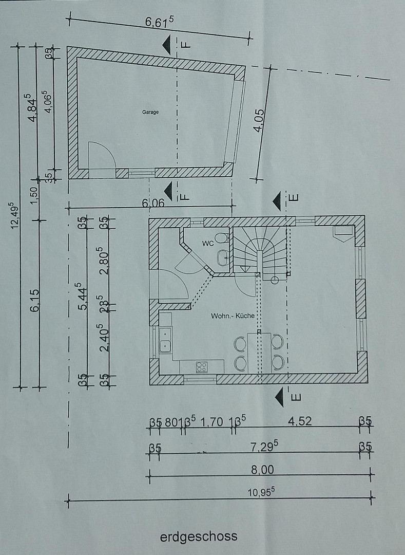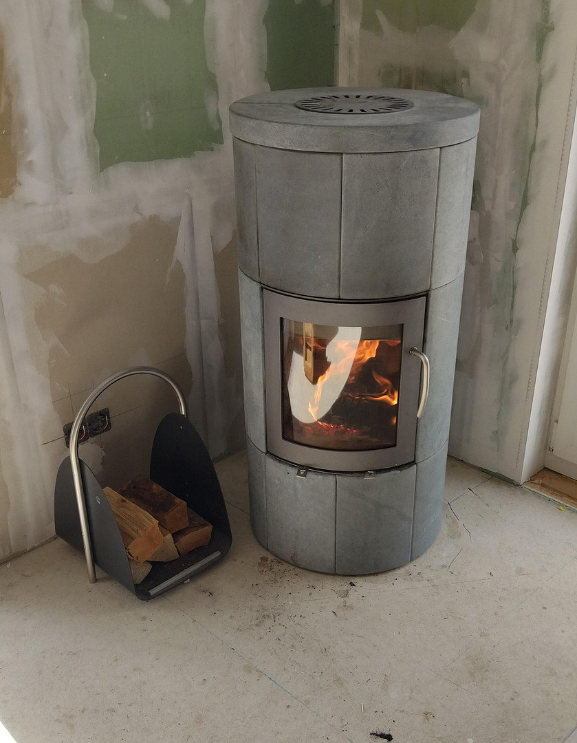 Due to the owner's frequent and often long-term absences for work, the house has rarely been occupied. The first floor, which includes a bedroom, a small study, and a bathroom, is finished and partially equipped with high-quality built-in wardrobes. The flooring is warm, light cork or vinyl (in the bathroom). The ground floor is prepared for final fitting. The flooring, tiles in the guest toilet, and wall coverings are yet to be chosen, offering the buyer various design options. Light switches and socket covers, recessed lighting, sanitary fixtures for the guest toilet, motion-sensor lighting for the staircase, etc., are already in place... Essentially, it's like a brand new property! Wood has been deliberately chosen as the primary energy source. The fireplace with its high storage capacity, combined with an efficient ventilation system and a few energy-saving electric heaters (bathroom/guest toilet/study), ensures comfortable room temperatures even on the coldest days. The two staircases, each with a quarter-turn, from the ground floor to the first floor, have precast concrete steps. This creates an enclosed space beneath the stairs, making it ideal for storage. The hot water supply is provided by electronically controlled, highly efficient instantaneous water heaters. The entire design is focused on minimizing costs. The attached garage is also insulated, making it frost-proof. Key features include: