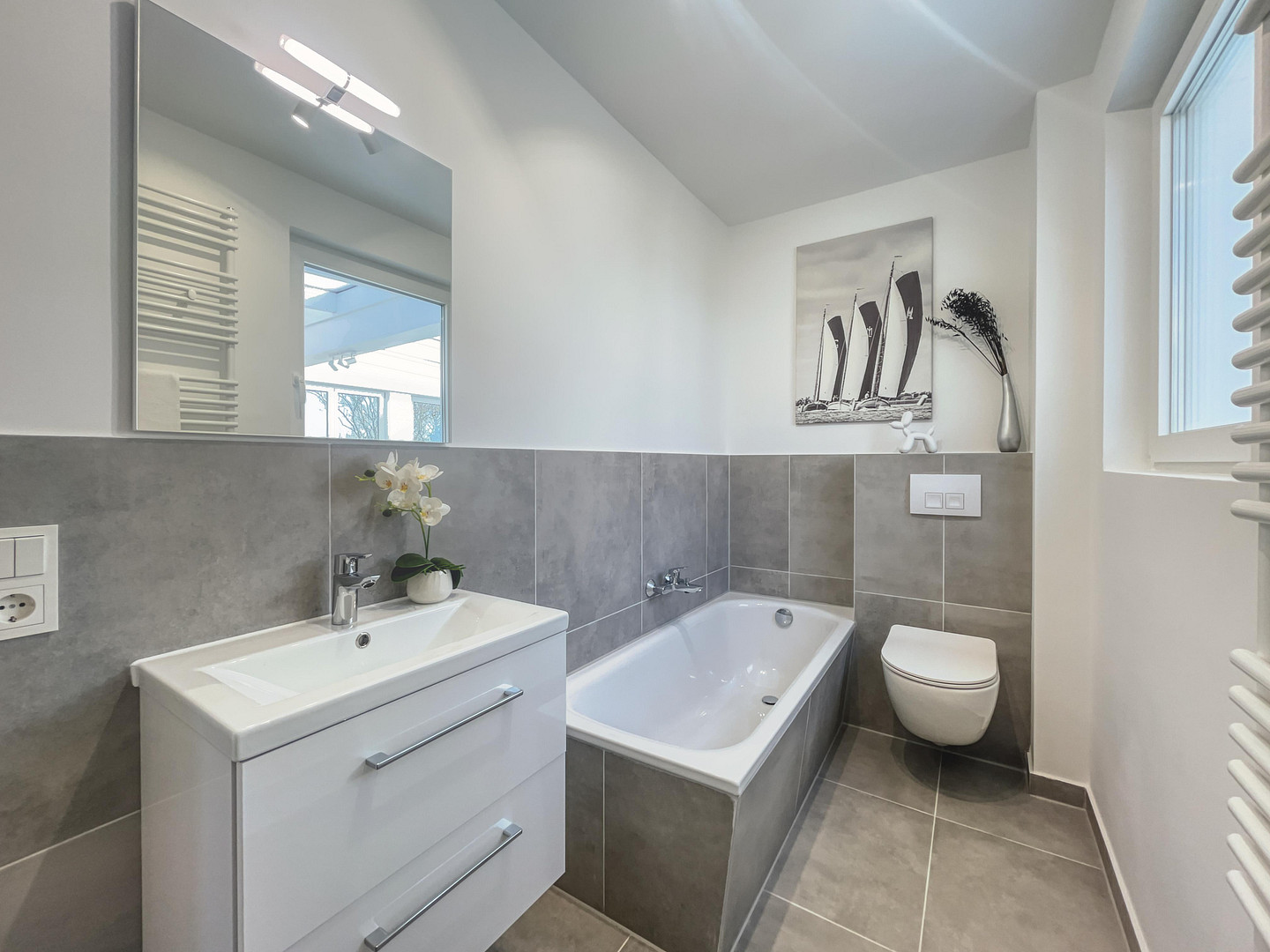 Exclusive bathrooms: Two modern bathrooms (one with a bathtub, one with a shower), equipped with high-quality fixtures from Grohe and Emke.