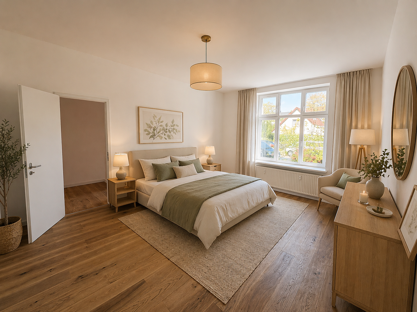 Königseestr., 12527 Berlin (Grünau)This spacious 4-room ground-floor apartment, located on the desirable Königsestraße in Berlin-Grünau, combines classic charm with modern living comfort. The approximately 117 m² of living space features a well-designed layout with bright, well-proportioned rooms and two stylishly appointed bathrooms.