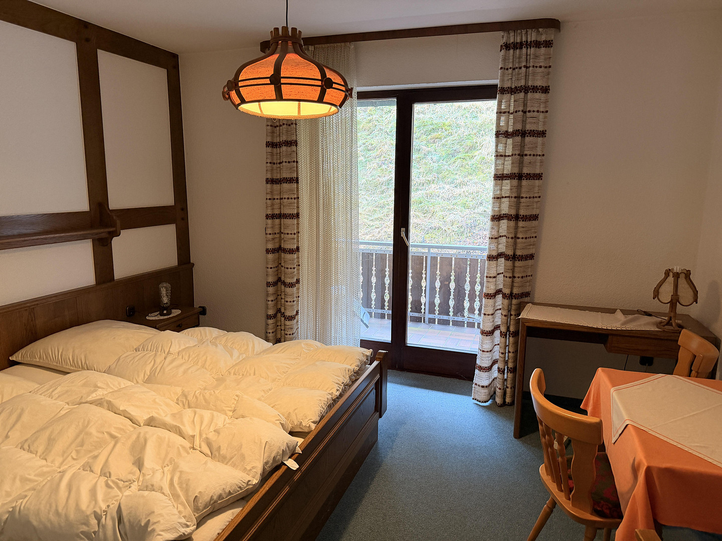 Catering: Fully equipped, functional commercial kitchen to restaurant standards (stainless steel, extractor fan). Cozy dining areas with traditional furnishings. Guest rooms: The guest rooms are functionally furnished. Many rooms have their own showers/toilets. Several rooms have balconies. The furniture in the rooms is largely made of high-quality, custom-made pieces. A large proportion of the rooms have underfloor heating, high-quality bathroom fixtures, and high-quality fittings. While some of the features reflect the charm of earlier years, a modern look can be easily achieved with a few simple changes (e.g., replacing shower screens with clear glass, modern curtains, attractive bedding, etc.).