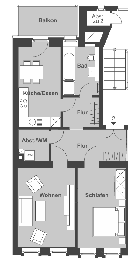 04315 Leipzig (Neustadt-Neuschönefeld) – SachsenThis high-quality renovated 2-room apartment is located on the 1st floor of a charming building from the Gründerzeit era in the popular Leipzig district of Reudnitz. The stylish apartment building, with only a few units, combines classic old-building charm with modern living comfort.