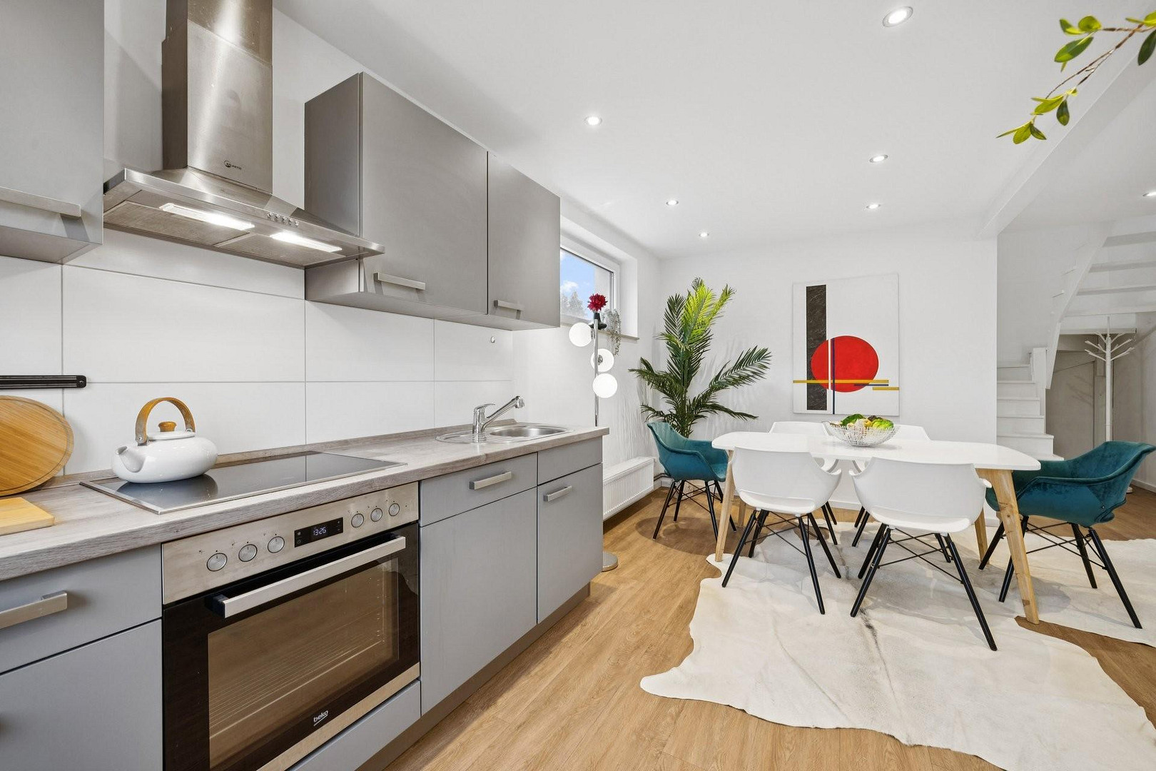 The two floors above offer a bright and spacious maisonette apartment, also recently renovated. Here, you can either connect it with the ground floor to create a large single-family home, or further divide it to create a total of 3 separate apartments for rent. The garden surrounding the house enjoys sunshine throughout the day. Up to 3 cars can be parked in front of the house.