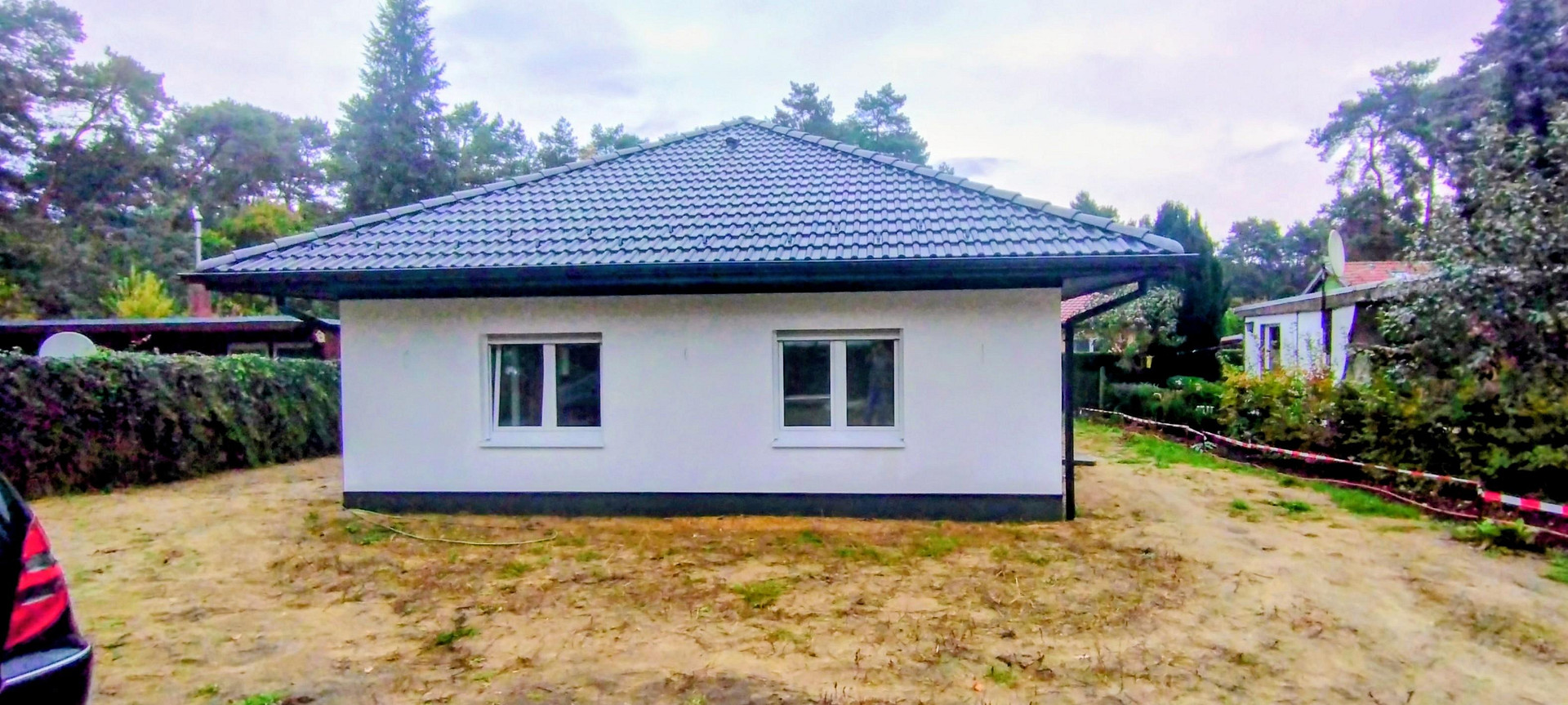 15864 Wendisch Rietz – BrandenburgThis charming, almost completed single-family home is being offered for sale. The house is a solid construction in a bungalow style with a hip roof, built on a concrete slab in 2025. It features 3 rooms (one with an open-plan kitchen), a hallway, a bathroom, a storage room, and an accessible attic. All utility lines are new and connected (electricity, gas, telecommunications, water, sewage, satellite). A drainage system with infiltration shafts has been installed around the house for rainwater management. The electrical, heating, and plumbing work are complete. All rooms are equipped with sufficient switches, outlets, and satellite connections. The house is heated by underfloor heating powered by a Vaillant boiler in combination with solar panels. Each room has its own control module. The house has network cabling throughout. The windows are double-glazed with manually operated external shutters. All window sills are installed, both inside and outside. The house is partially tiled and painted (hallway, bathroom, storage room, room ceilings, kitchen).
