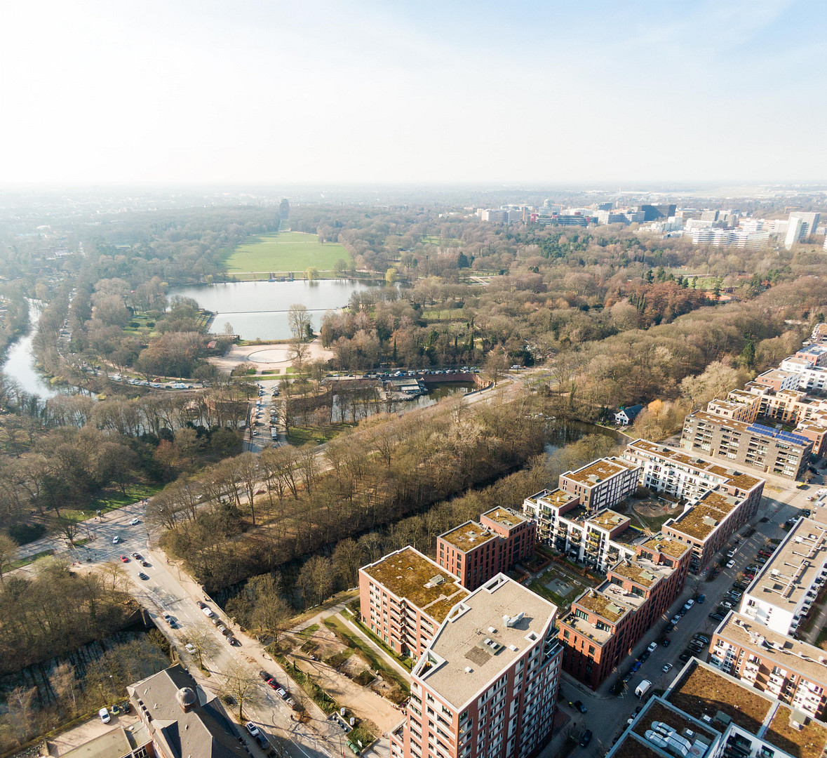 Located directly on the Uhlenhorster Canal and in close proximity to the Hamburg City Park: "Waterlofts" in Winterhude combines an urban lifestyle – which includes excellent infrastructure with a wide range of shops, cafes, etc., as well as excellent connections to the subway and S-Bahn networks – with the harmonious recreational opportunities that only life by the water can offer.
