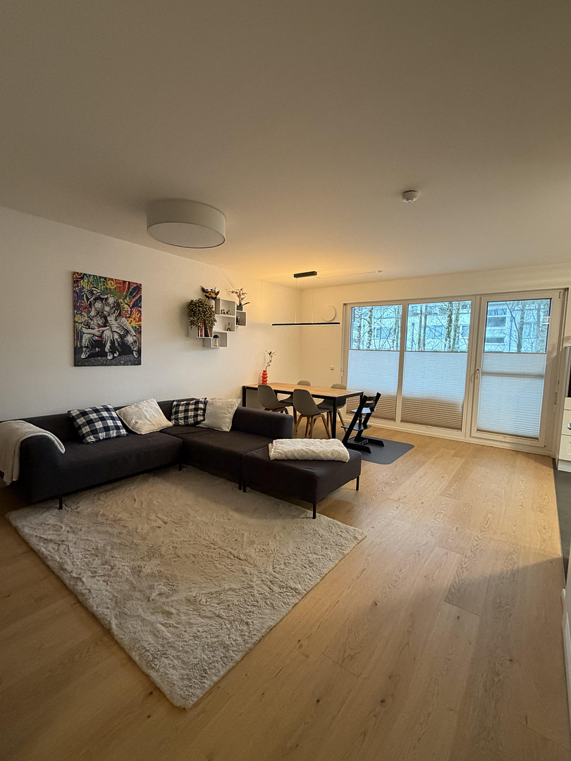 81925 München (Oberföhring) – BayernWe are selling our beautiful 3.5-room apartment on the 2nd floor of a well-maintained residential complex in Bogenhausen/Oberföhring. The complex was built in 2011 in a modern, Mediterranean style and features harmonious architecture and natural stone facades in warm beige tones. We acquired the apartment in 2019 and subsequently renovated it, including the floors, built-in wardrobes, kitchen, and electrical system. The open-plan living, dining, and kitchen area is spacious and offers a particularly pleasant and bright atmosphere thanks to the floor-to-ceiling windows. A high-quality fitted kitchen with branded appliances will remain in the apartment. Adjacent to the living area is a practical utility room with a washing machine connection. Real wood parquet flooring is installed throughout the living and bedrooms, combined with underfloor heating with individual room control. Custom-made built-in wardrobes provide additional storage space in the bedroom, hallway, bathroom, and guest toilet. The bathroom features a bathtub, a separate shower, and a towel radiator. The apartment also includes a balcony with a view of the adjacent wooded area, a storage room in the basement, a bicycle storage space, and a parking space in an underground garage. The apartment is ideal for couples or small families. We would be happy to provide further information or arrange a viewing upon request.