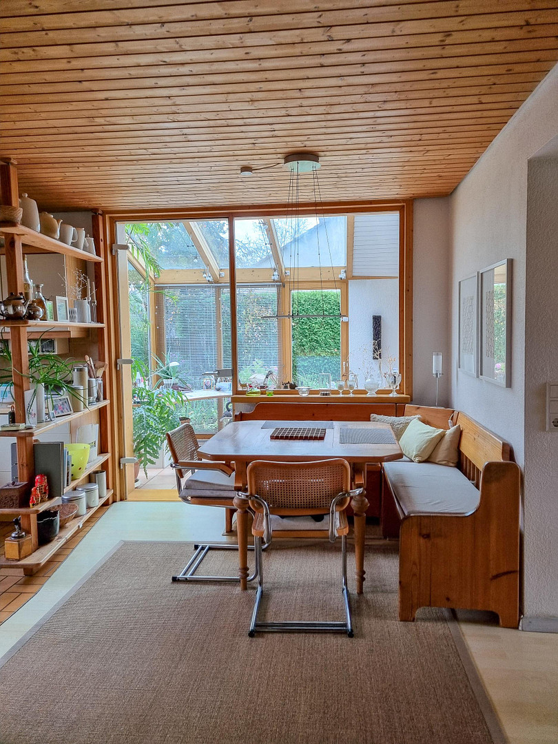 89558 Böhmenkirch-Steinenkirch (Steinenkirch) – Baden-WürttembergThis detached house, with 215 square meters of living space, 2 garages, and 697 square meters of land, was built in 1982. In 1993, a large conservatory with an additional living area (totaling 59 square meters) was added. With 9 rooms spread over two floors, it offers a variety of usage possibilities. All rooms are bright and sunny due to their orientation. The attic (65 square meters), which includes a balcony, can also be used as a separate apartment or office.