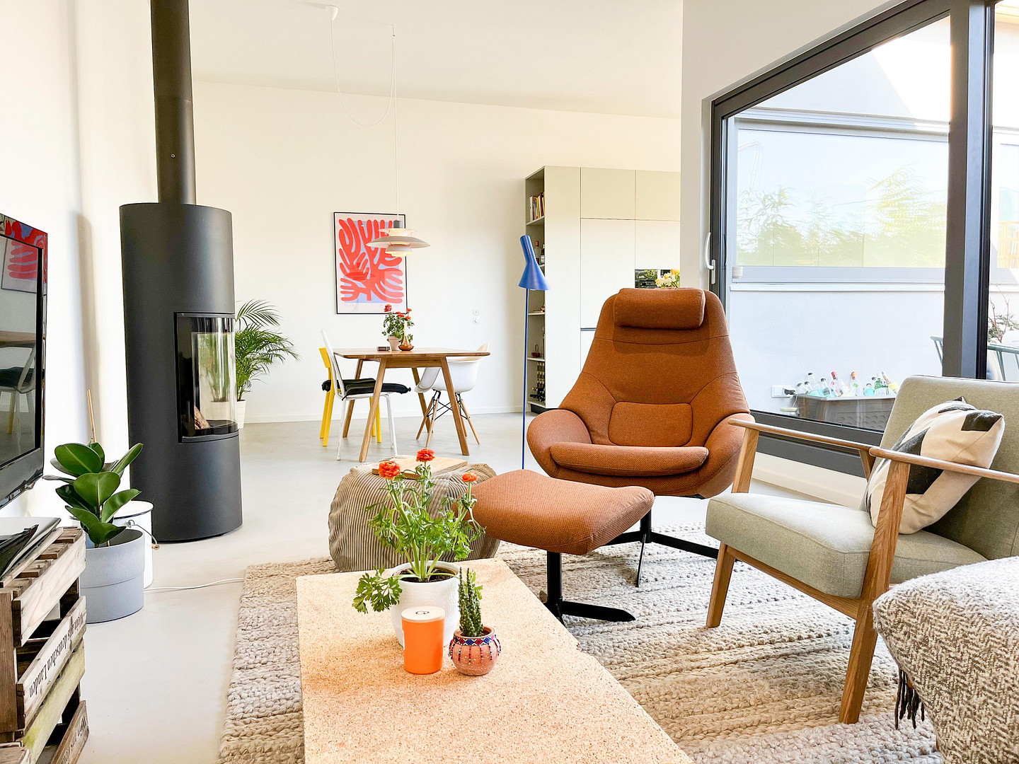 A central feature is the fireplace, which adds a special atmosphere to the living area and highlights the high-quality finish.