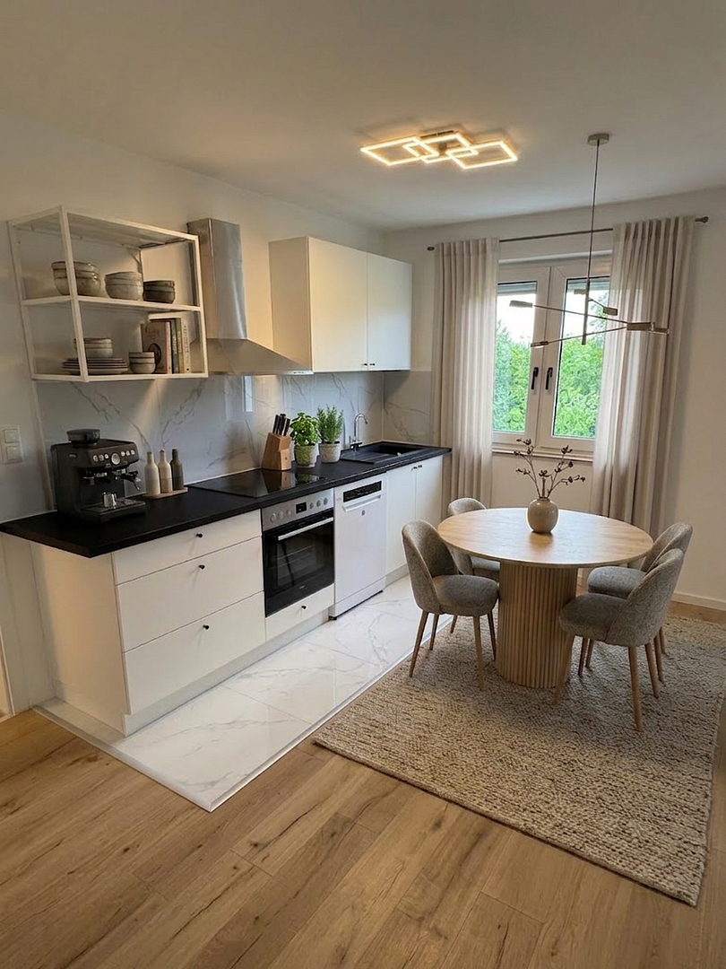 The apartment located at Schildkrötenweg 2, 70499 Stuttgart, is situated in a quiet and family-friendly residential area of Stuttgart. This location offers excellent access to public transportation and a variety of shopping options.