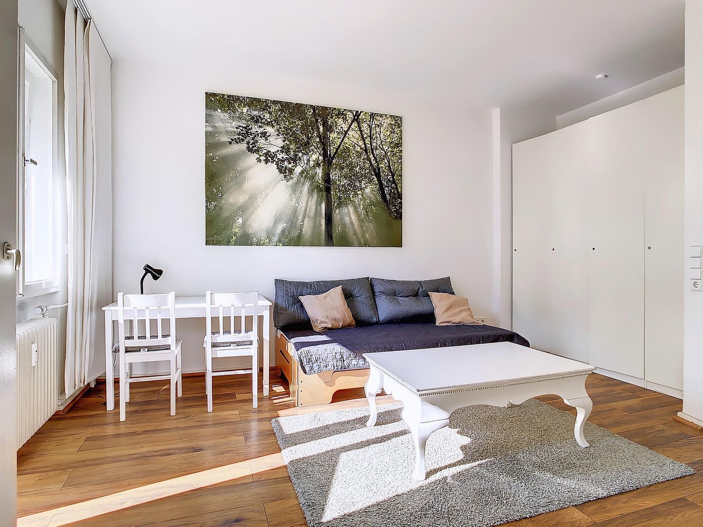 Thanks to excellent public transportation links and its central city location, the entire city center is within easy reach. The apartment, with its orientation towards the spacious and green courtyard, offers a peaceful retreat while still being flooded with sunlight.