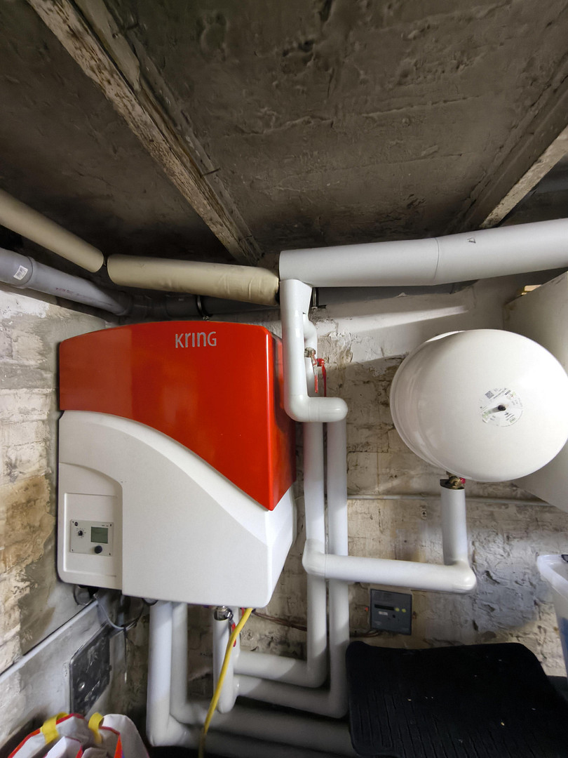 The windows were replaced around 2001, and the exterior facade was insulated around 2007. In approximately 2020, the property was connected to the district heating system.