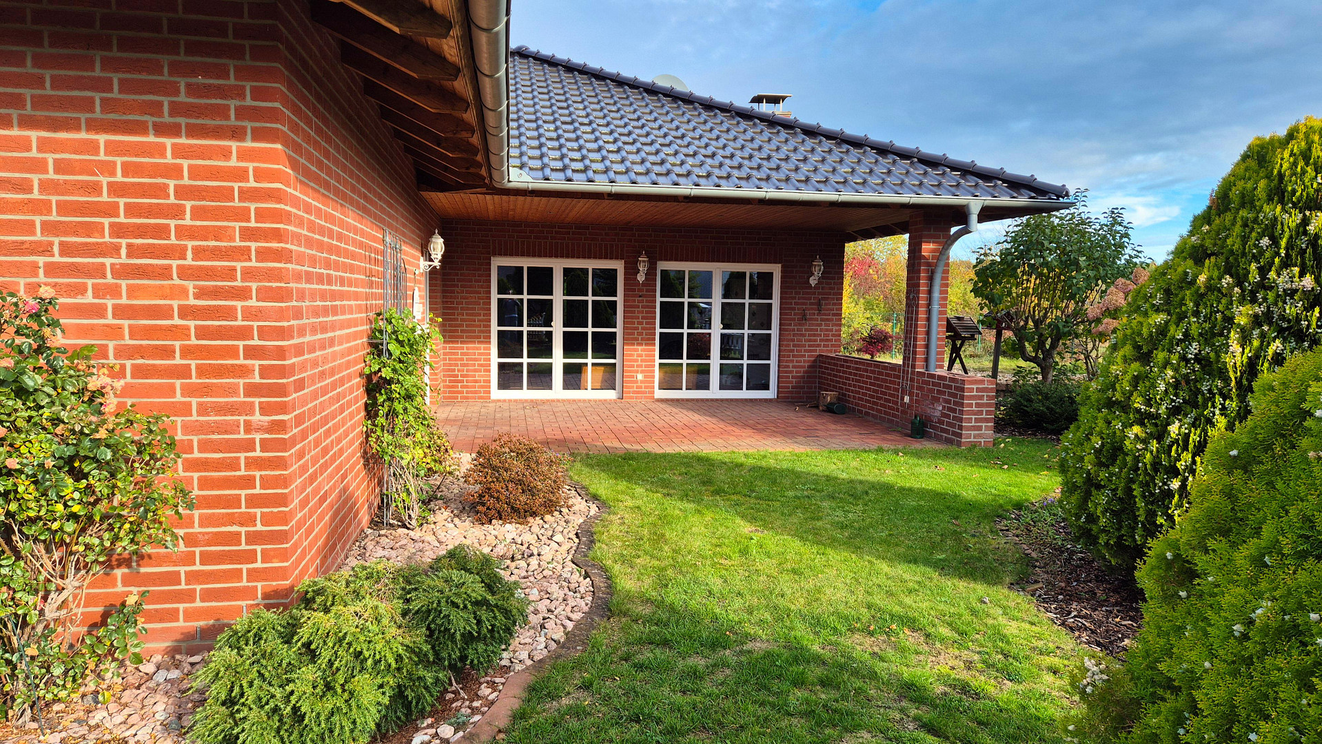 Bathroom: Large master bathroom with a bathtub and a separate shower. Utility Room: A Miele washing machine and dryer (of the highest quality) are available. Technology: High-speed internet (70 Mbit/s), a smart home system, and an alarm system for your security. Climate Control: The entire house is equipped with underfloor heating (district heating). The high-quality tile floors provide a cozy warmth in winter and a pleasant coolness in summer.