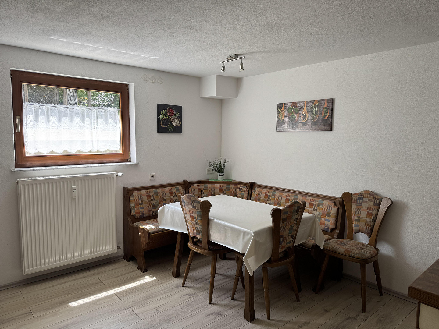 Dettingen/Erms is located in the picturesque Ermstal valley, on the edge of the Swabian Alb, and has a population of just over 10,000. Bus and train stops are within a 1-2 minute walk. Supermarkets, bakeries, and a gas station are all nearby. The outlet city of Metzingen and the thermal spa of Bad Urach are approximately 6 km away. Stuttgart Trade Fair and the airport are about 30 km away. Cycling and hiking trails, which lead through many idyllic spots, are easily accessible on foot. Furthermore, you can reach the Urach Waterfall, the Gütersteiner Waterfalls, the Hohen Urach castle ruins, and the vineyards of Metzingen.