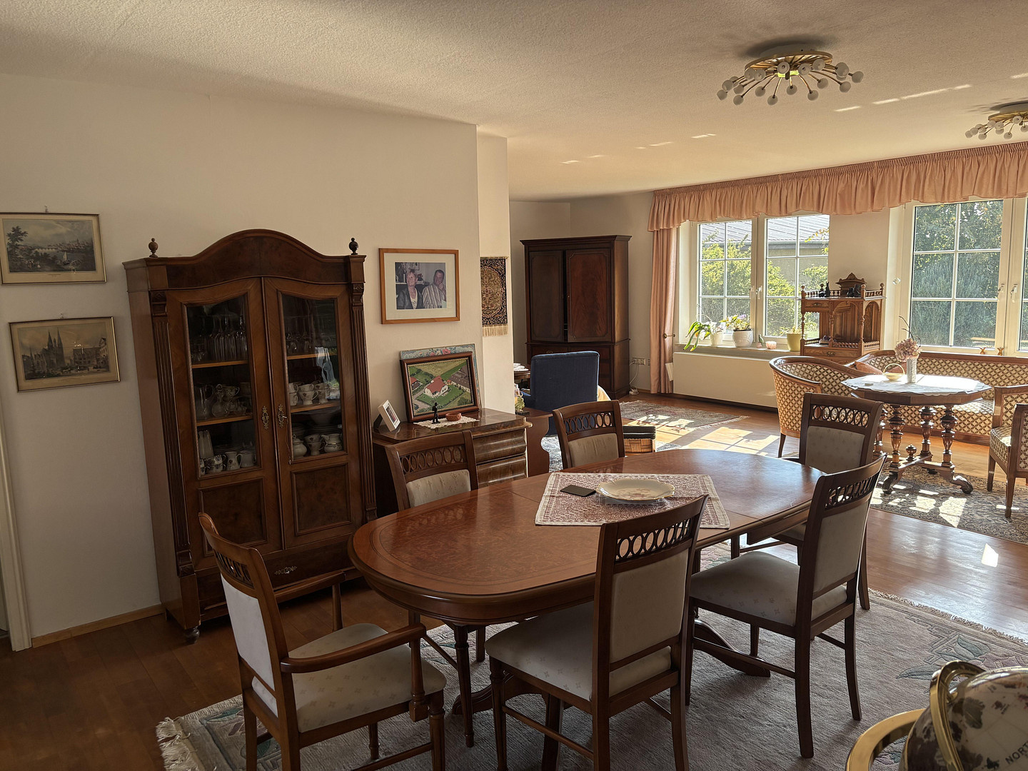The very spacious living and dining area covers approximately 60 square meters. A large patio door leads to the beautifully maintained, fully landscaped garden. Another patio door in the fully equipped kitchen, which includes a pantry, also provides access to the garden.