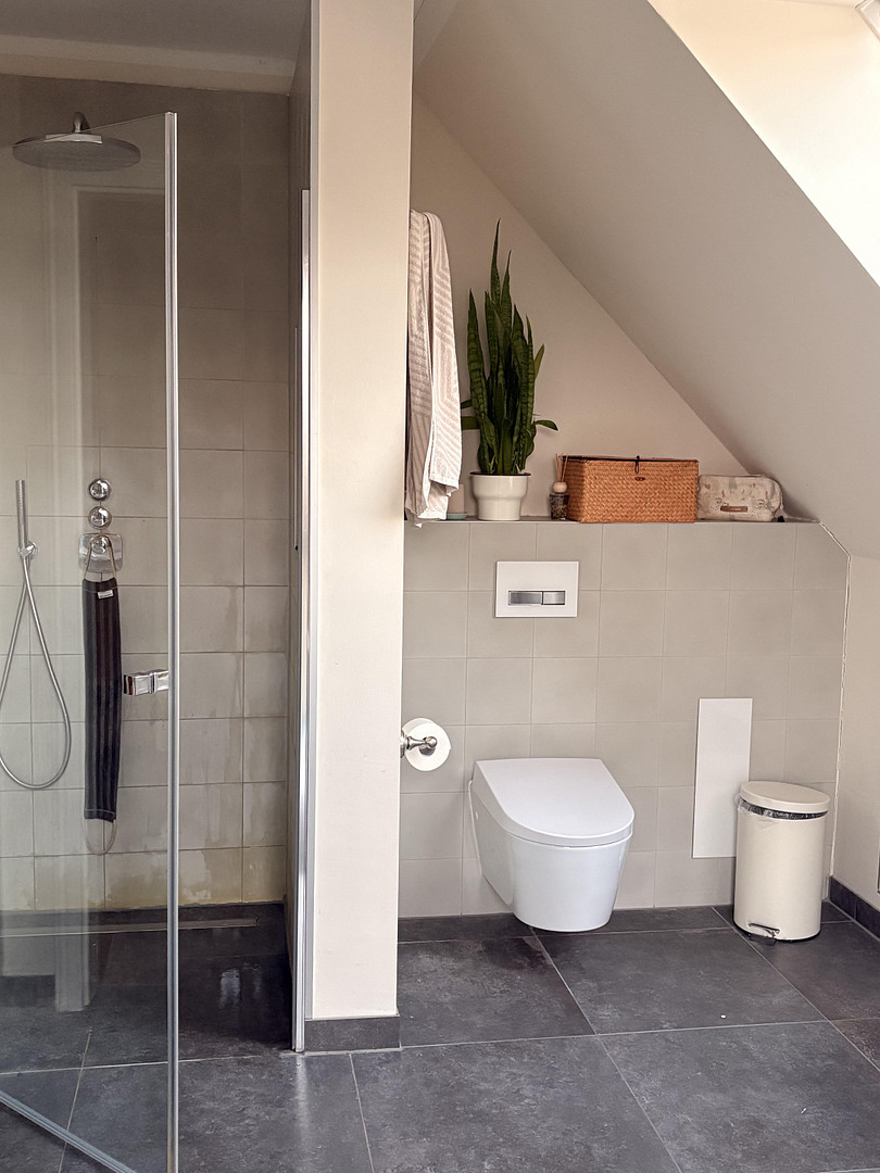 Well-designed layout with a laundry chute, a spacious utility room, and a walk-in closet in the master bedroom area. Two bathrooms on the upper floor (master bathroom with a bathtub, toilet with bidet function, and a children's bathroom with a shower). An additional guest bathroom with a shower on the ground floor.