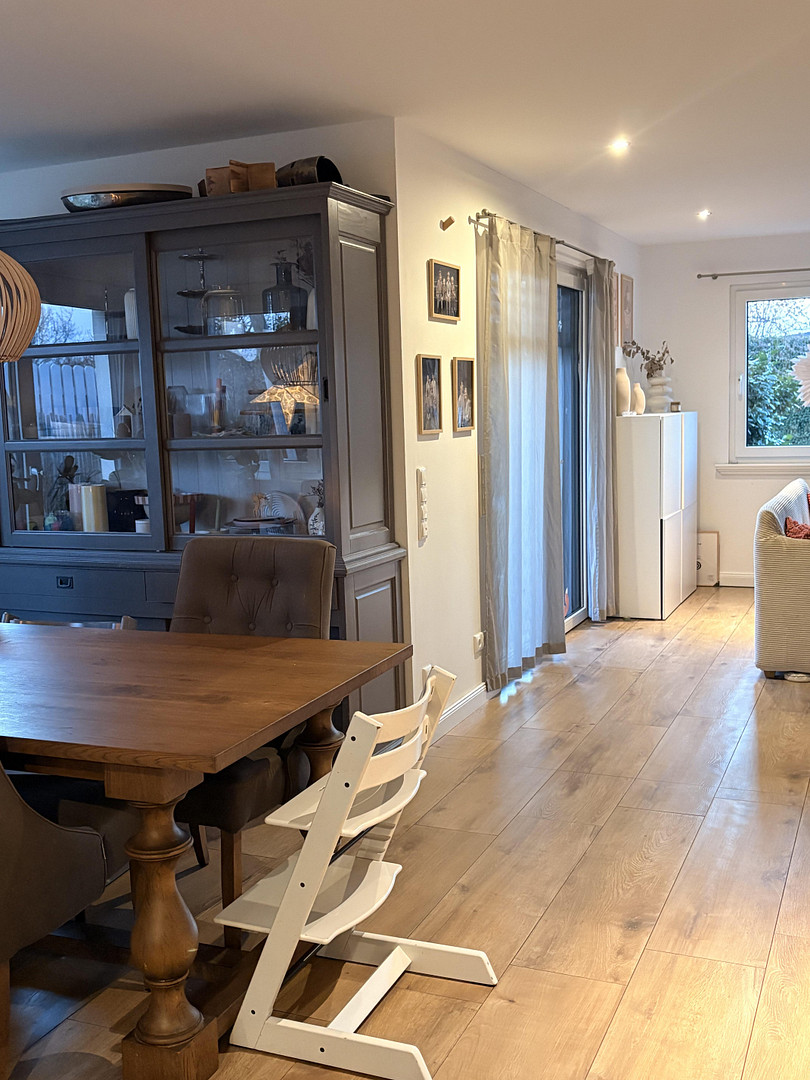 This modern, lovingly designed detached house is located on a quiet residential street – available directly from the owner, with no commission. It's perfect for families who want to live close to nature while also having quick access to Lüneburg or Hamburg. This high-quality house, built using a timber frame construction (KfW 55 standard, built in 2016/2017), impresses with its well-thought-out layout, energy-efficient technology, and many loving details. The heart of the home is the spacious living and dining area, over 40 m², with direct access to the terrace. The high-quality fitted kitchen from the manufacturer Schüller, with a kitchen island, steam oven, and oven, blends perfectly into the open living space and will quickly become the center of family life. A prepared fireplace connection adds to the particularly cozy atmosphere. On the ground floor, there is also a versatile guest room or home office, a modern guest bathroom with a shower, and a spacious utility room with an integrated laundry chute – a well-thought-out detail for everyday use. The upper floor is ideally suited for family life, with two bright children's rooms that offer potential for expansion, a spacious hallway with the possibility of creating another room, and a separate children's bathroom with a shower and a child-friendly sink. The parents' area provides a private retreat with its own bathroom, including a bathtub and toilet with bidet function, a practical laundry chute, and a walk-in closet. The converted attic space features another spacious room with air conditioning, large skylights, and a cozy sleeping nook with a built-in bed – ideal as a children's room, guest room, or retreat. (The floor plan for this area is currently being prepared).