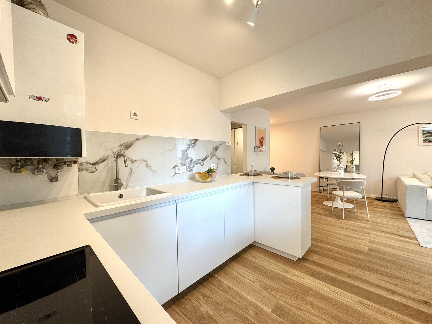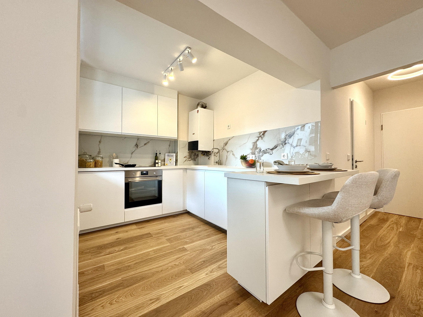The furniture listed in the inventory can be purchased separately. The additional cost for the furniture is €6,000 in total. The fitted kitchen, including all appliances, is included in the purchase price of the apartment.