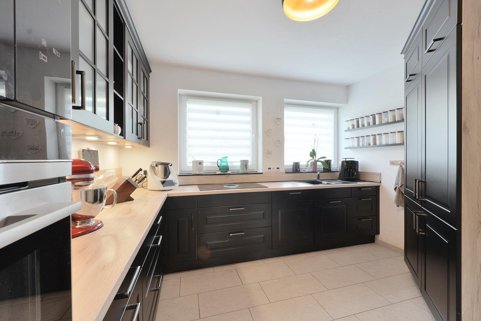 Günterstr. 56, 47226 Duisburg (Hochemmerich) – Nordrhein-WestfalenThis house was built in 2020 using solid construction with a full brick facade by a reputable construction company (KfW-55 standard). It is fully basemented. Due to its recent construction, it also meets new energy efficiency standards regarding insulation and the photovoltaic system. Therefore, energy costs are very low (we currently pay approximately €150 for electricity per month, including heating and hot water). There is no need for renovations – just a fresh coat of paint and it's ready to move in. The garden is relatively large for a property in this location, but easy to maintain, with plenty of lawn and two brick raised beds. A garden shed is also included. The 9-meter long garage with an electric sectional door offers plenty of space for a car, bicycles, etc. The parking space directly in front also has enough room for two mid-size cars. The wall in the first floor between the office and the children's room is a dry wall that was installed later. This can be completely removed if needed, if a larger room is desired instead of the two smaller rooms. Special feature: