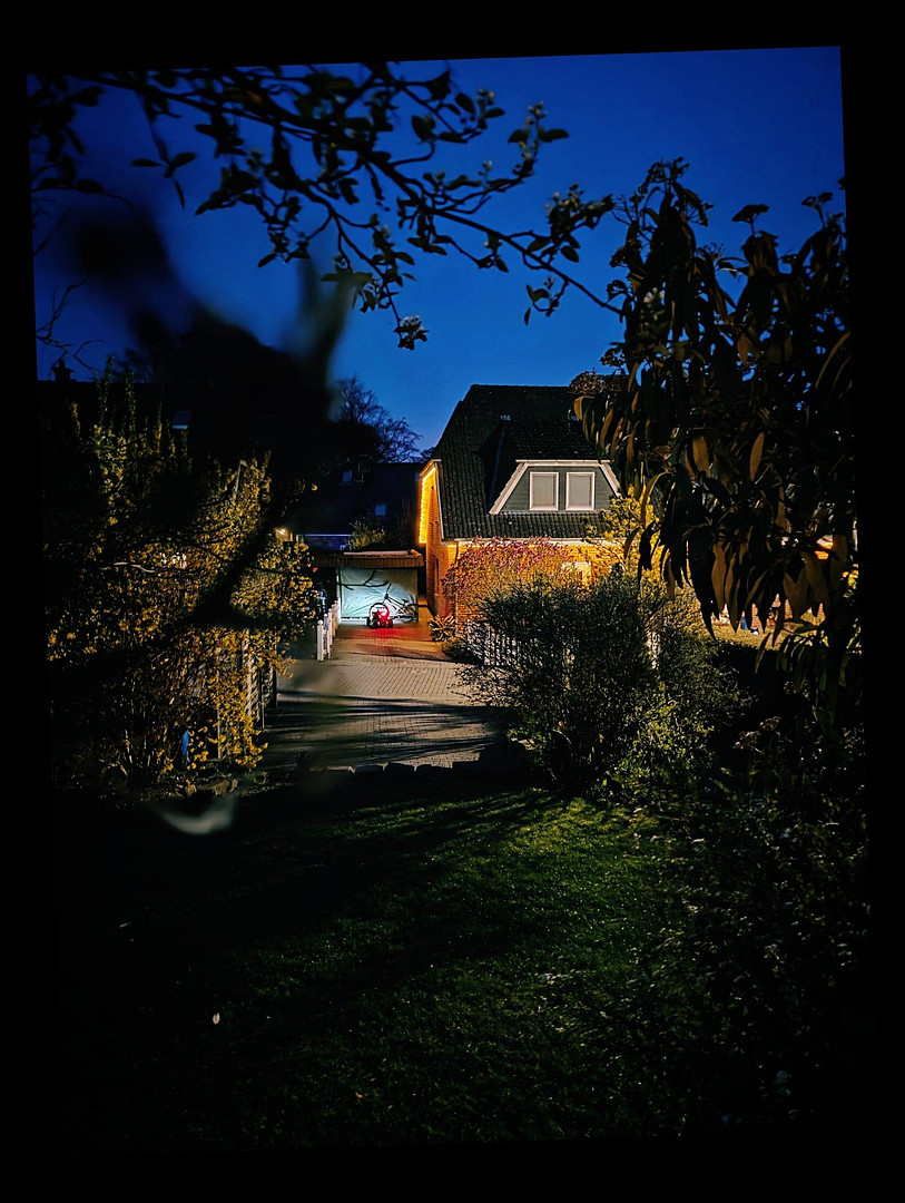 23936 Grevesmühlen – Mecklenburg-VorpommernThis semi-detached house was built in 1994 using solid construction with brick cladding and a partial basement. It was last renovated between 2023 and 2025, including the installation of a new natural gas central heating system (manufactured by Viessmann) and the replacement of all skylights. Access to the converted attic is now via a high-quality solid wood staircase (designed for hanging), installed in 2024, rather than a simple wooden pull-down ladder. You enter the property through a bright hallway, which leads to the kitchen (completely renovated in 2016, including the electrical system), the guest toilet, and the spacious living and dining room with direct access to the terrace and garden. A concrete staircase with a handrail leads to the basement and also to the hallway on the top floor. There, you will find the bathroom with a bathtub and three rooms, which have previously been used as bedrooms. The converted attic has a small hallway, a playroom, and a storage room. In the playroom, an electric infrared heater provides comfortable warmth when needed. The front garden area is enclosed by a white metal fence with an electric gate. The driveway and parking space (with a carport) are paved with concrete paving stones. The rear area features a higher hedge for privacy. A approximately 20 square meter patio made of decking with Bangkirai wood and a supporting structure has been built on the west side of the semi-detached house. Behind the carport, which includes a storage shed, there is also a wooden garden pavilion with a supporting structure and decking. Feel free to take a look at this interesting semi-detached house without any obligation. We look forward to hearing from you.