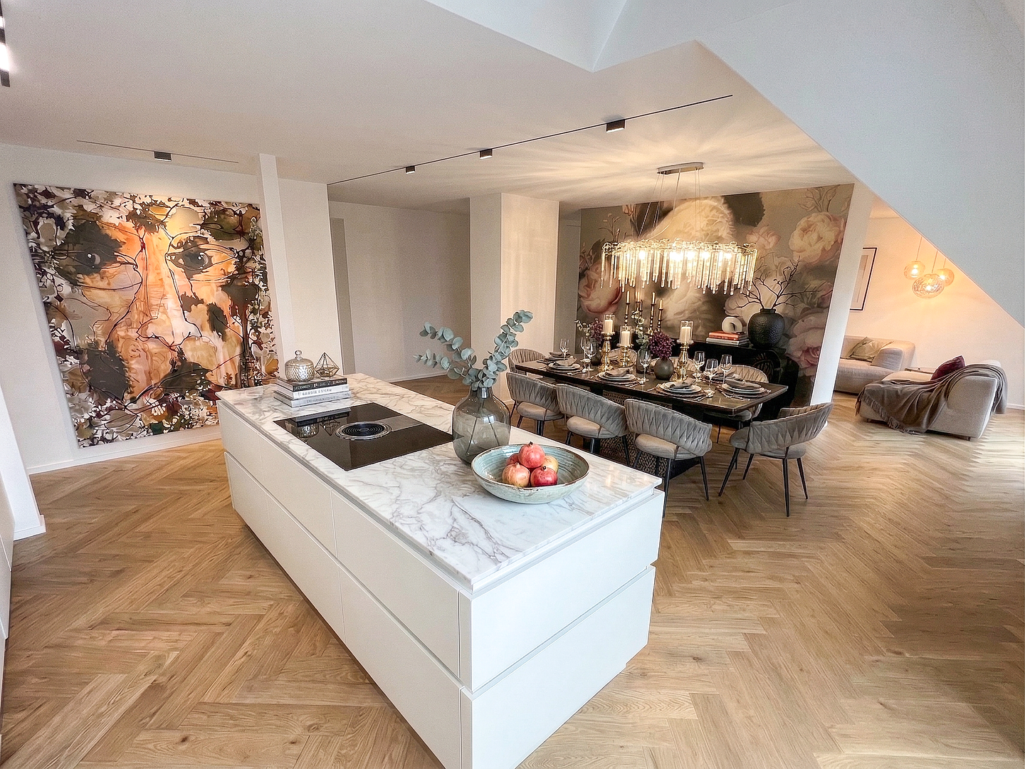 The apartment impresses with its high-quality, modern finishes and an energy-efficient attic conversion that meets KfW standards.