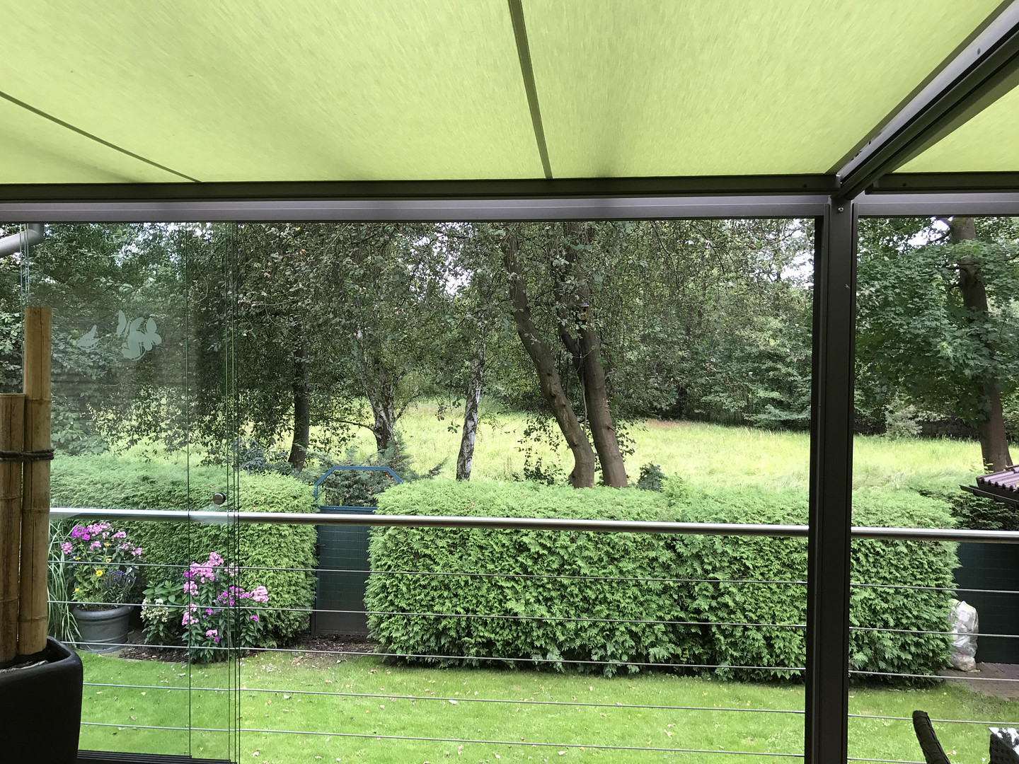 - Covered terrace (approximately 30 m²) with glass/aluminum construction.