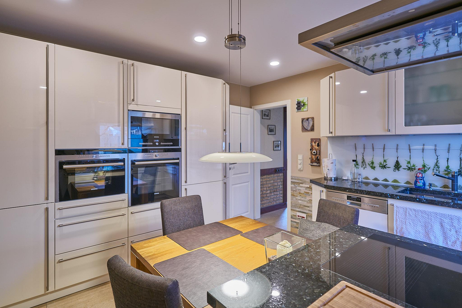 - High-quality fitted kitchen with granite countertop and branded appliances.