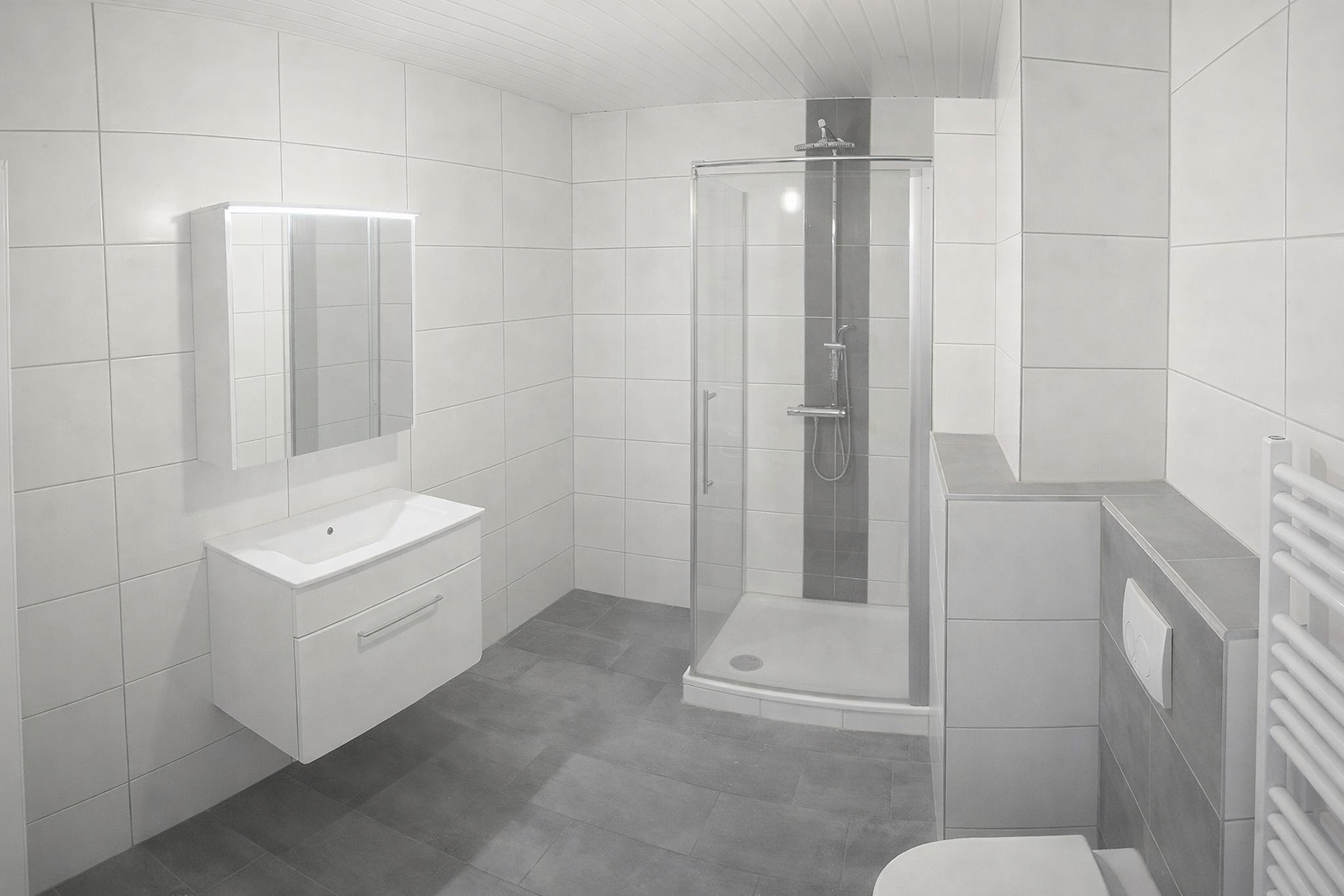 * Large daylight bathroom with a shower