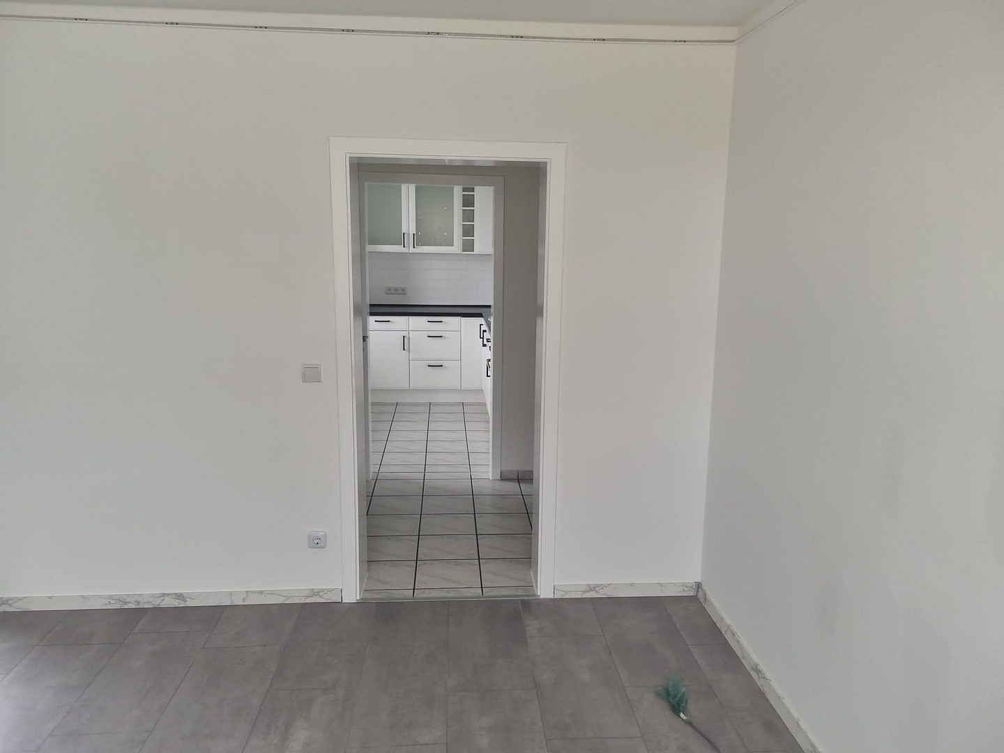 During the renovation, the walls were freshly painted white, and a new sink with a cabinet was installed in the shower room. The entire apartment is fitted with easy-to-maintain tile flooring.