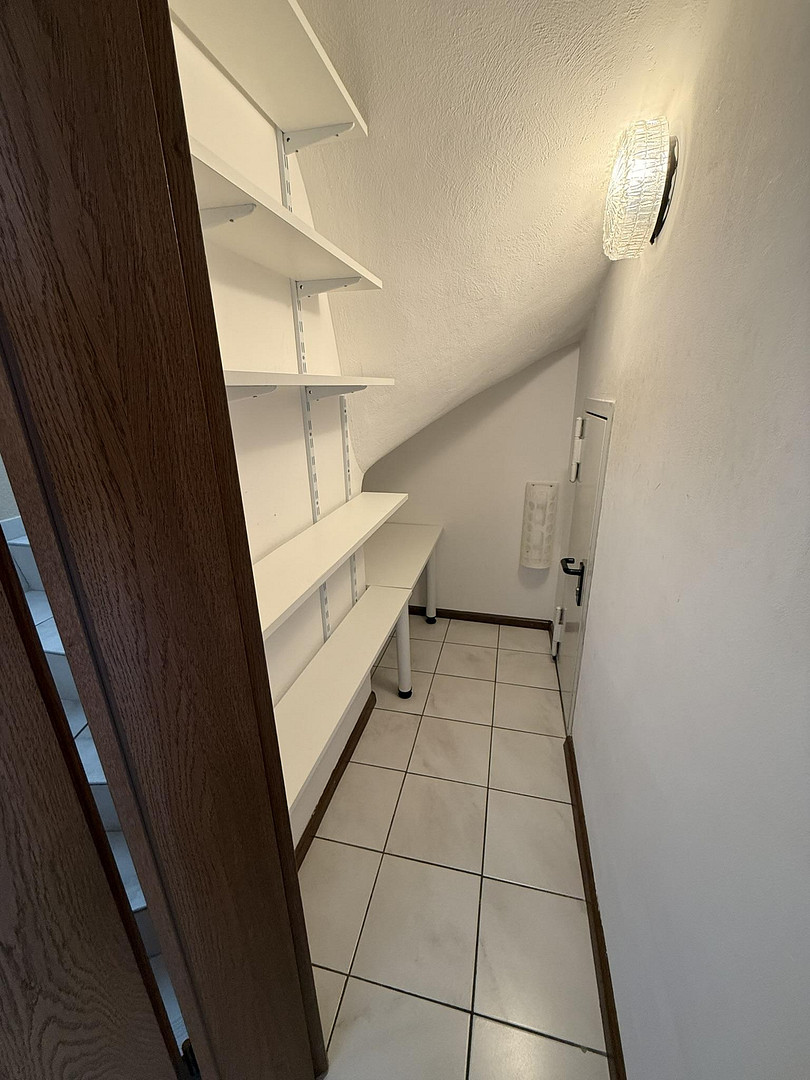 The apartment features roller blinds on the windows. In the large bedroom on the top floor, these can be conveniently operated electrically, while manual roller blinds are available in the other rooms. A fiber optic connection from Telekom (Giganetz up to 1,000 Mbit/s) provides excellent internet connectivity.