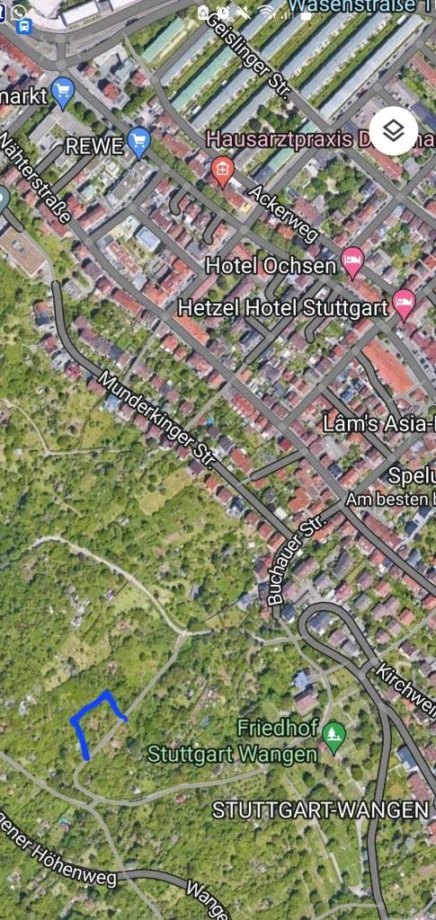 For sale is a garden plot located in the Wangen district of Stuttgart. The plot is situated on a slope and offers a variety of uses for gardening and nature enthusiasts.