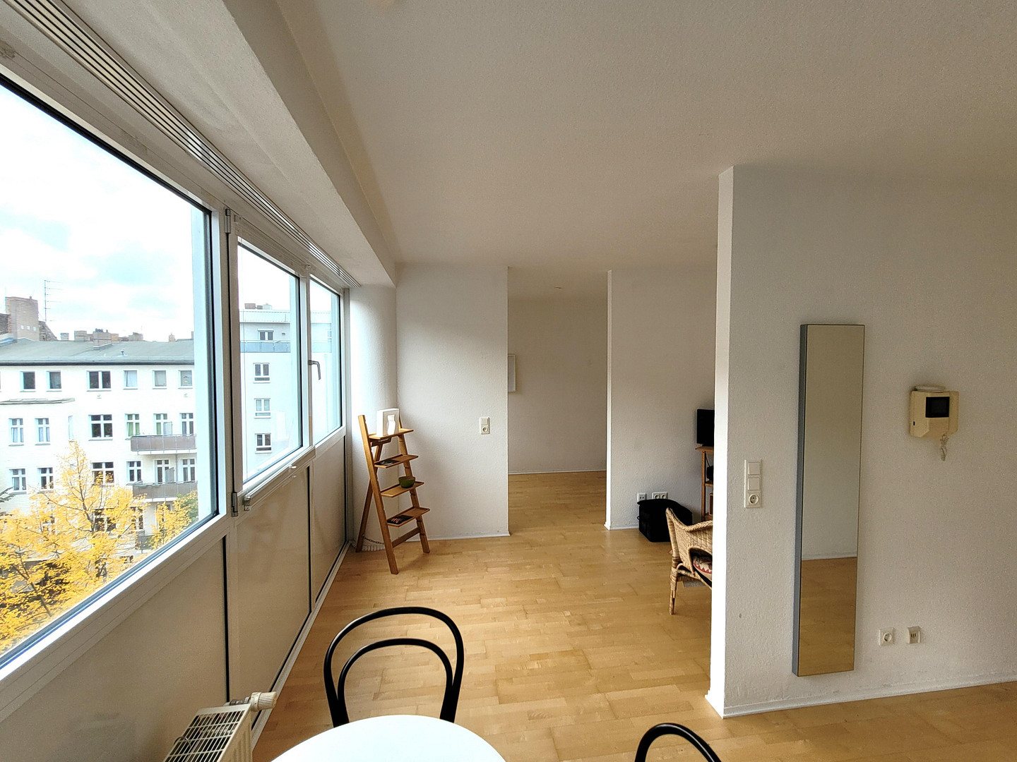 Erich-Weinert-Str. 143, 10409 Berlin (Prenzlauer Berg)Immediately available, no commission from the owner. Located in Prenzlauer Berg (primarily a residential area), this bright apartment is in a (mini-)loft style, with a large east-facing window and located on the top floor, without any sloping ceilings, and with elevator access. It features a built-in kitchen, maple parquet flooring, and some accessibility features.