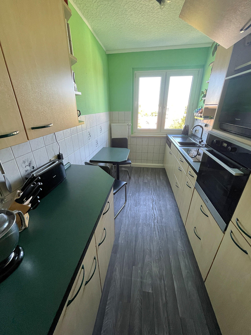 04357 Leipzig (Mockau-Nord) – SachsenThis 4-room apartment offers a penthouse-like feel with 88 square meters of living space. Located on the top floor of the building, it boasts excellent views, and no one lives above you. You are buying directly from the owner, who currently resides in the apartment, making viewings and the move-in date arrangements straightforward. The apartment is part of a residential complex with 40 units. It is located on the side of the building away from the street, but it forms a single administrative unit with the 30 apartments in the front building. The property underwent a major renovation in 1995, including insulation of the facade, replacement of windows, and renewal of the plumbing. In 2010, the heating system was converted to a 2-pipe system, and all radiators in the apartment were replaced. The apartment is finished to a high standard. All windows (except for the kitchen and bathroom) are equipped with electrically operated external blinds (with remote control). A split air conditioning system (3.5 kW) was installed in the living/dining area in November 2022. In March 2024, a balcony solar power system (800 watts) was installed. The electricity supply for the storage room in the basement has been connected to the apartment's electrical system, allowing for the charging of e-bikes or the operation of a freezer in the basement. Your future home features a bathroom with natural light, and all rooms, except for the bedroom, are directly accessible from the hallway. The built-in kitchen, primarily featuring Miele appliances, will remain in the apartment. If desired, we can explore the possibility of including a rented garden of approximately 250 square meters, with a small gazebo, located about 900 meters from the apartment. The monthly service charge is €267.00. The maintenance reserve is €52.77. Currently, the reserve fund for the entire property exceeds €100,000.