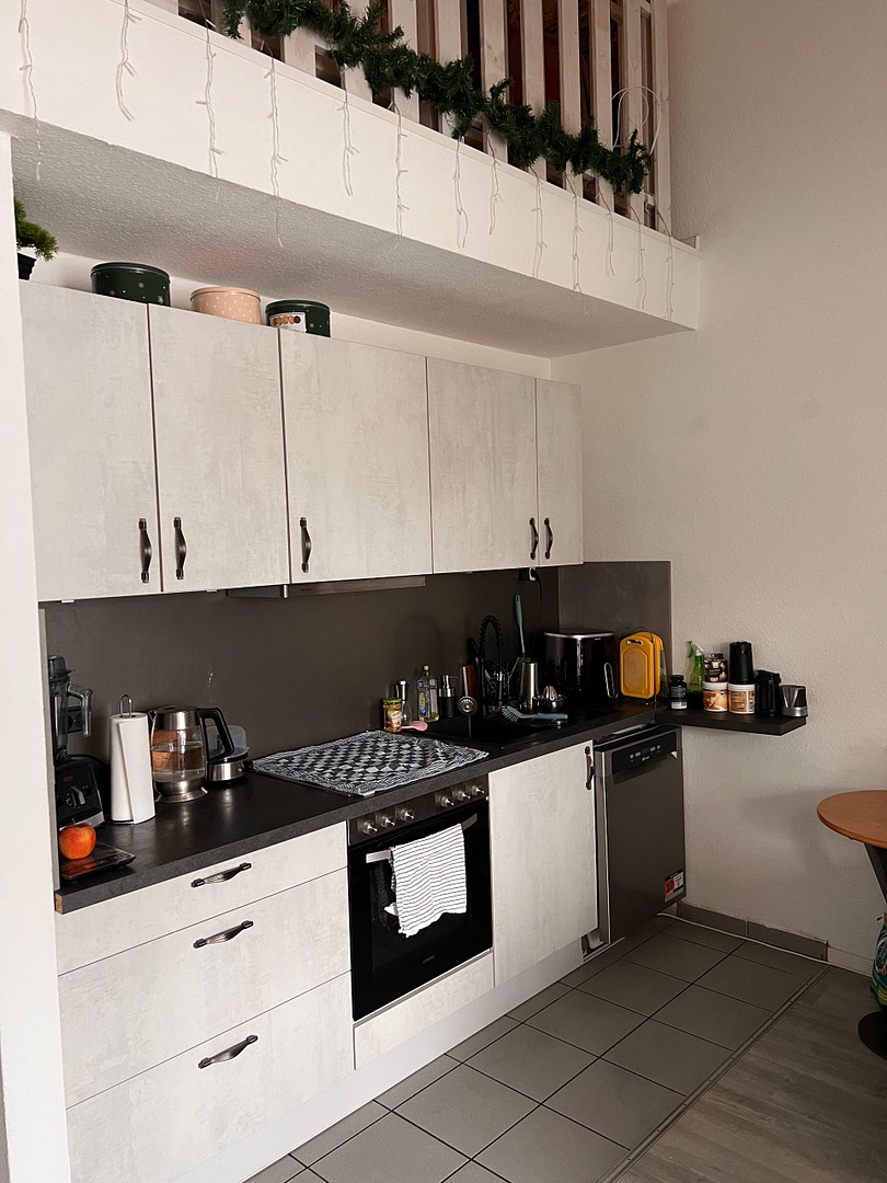 - Modern, open-plan, and air-conditioned 3.5-room maisonette apartment, including a fitted kitchen.