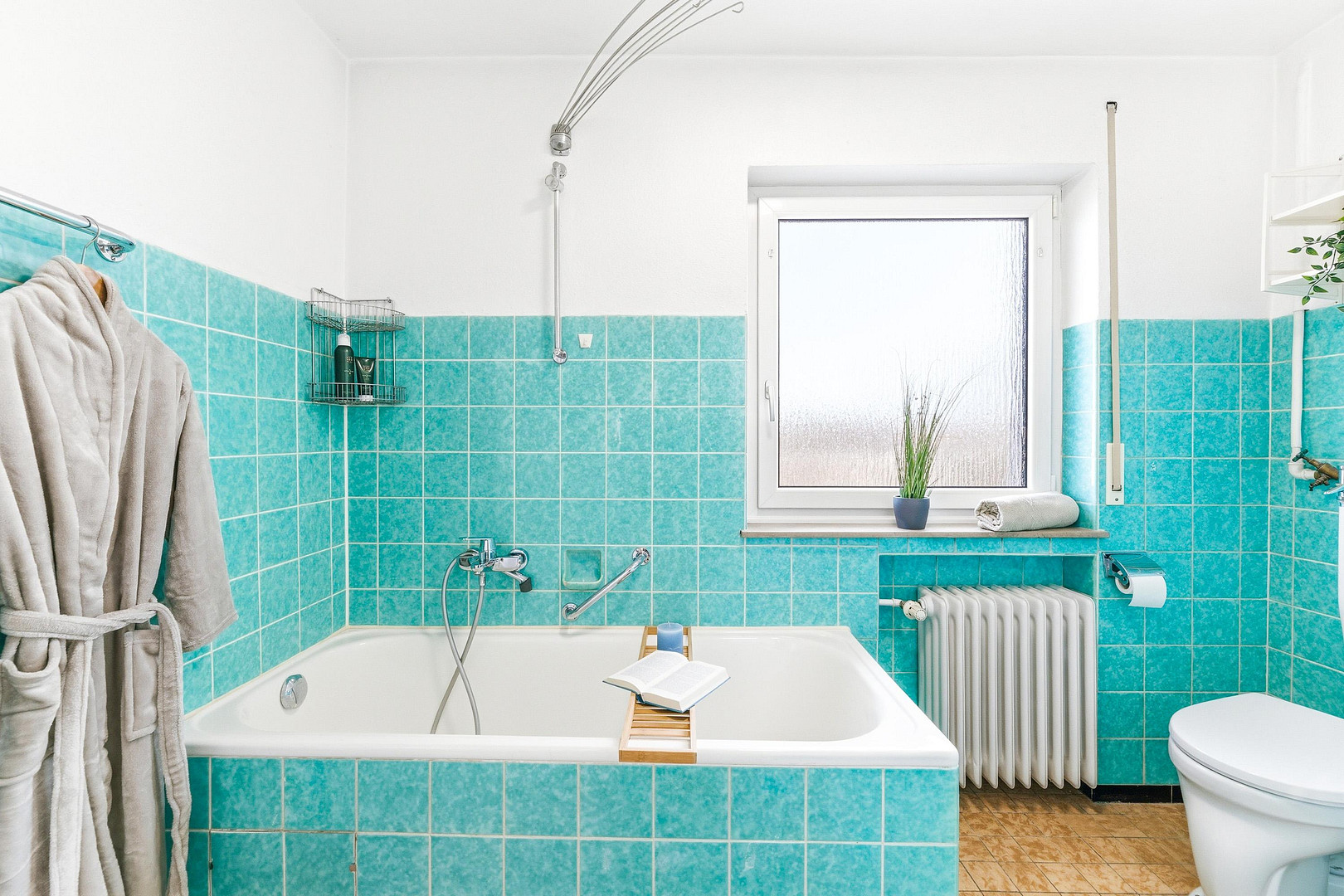 * Bathroom with daylight, featuring a bathtub, sink, and toilet