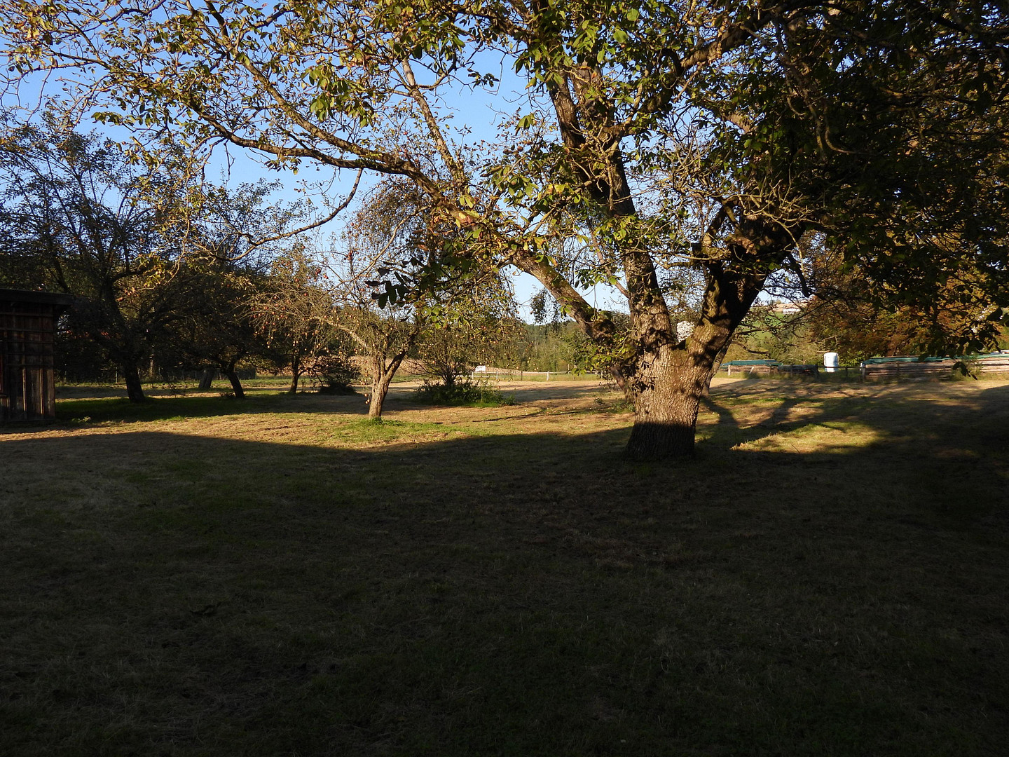 The property is divided into two land parcels. The tithe barn is located on the smaller parcel, which is 1,111 square meters in size, while the remaining buildings are located on the larger parcel, which is 6,634 square meters in size. A portion of the property, approximately 4,000 square meters, is located within the village area, which opens up additional possibilities. Any potential further development would need to be discussed with the local municipality or district office if there is interest. The spacious property, with its mature trees (fruit and nut trees), as well as the existing outbuildings, is ideal for keeping small animals and for growing your own food/self-sufficiency. There is a water right associated with a nearby spring, and a water pipe runs to the property. Despite being located in a village, the property offers a pleasant sense of seclusion, tranquility, and comfort due to its layout and extensive garden, which could certainly be enhanced further with appropriate planting.