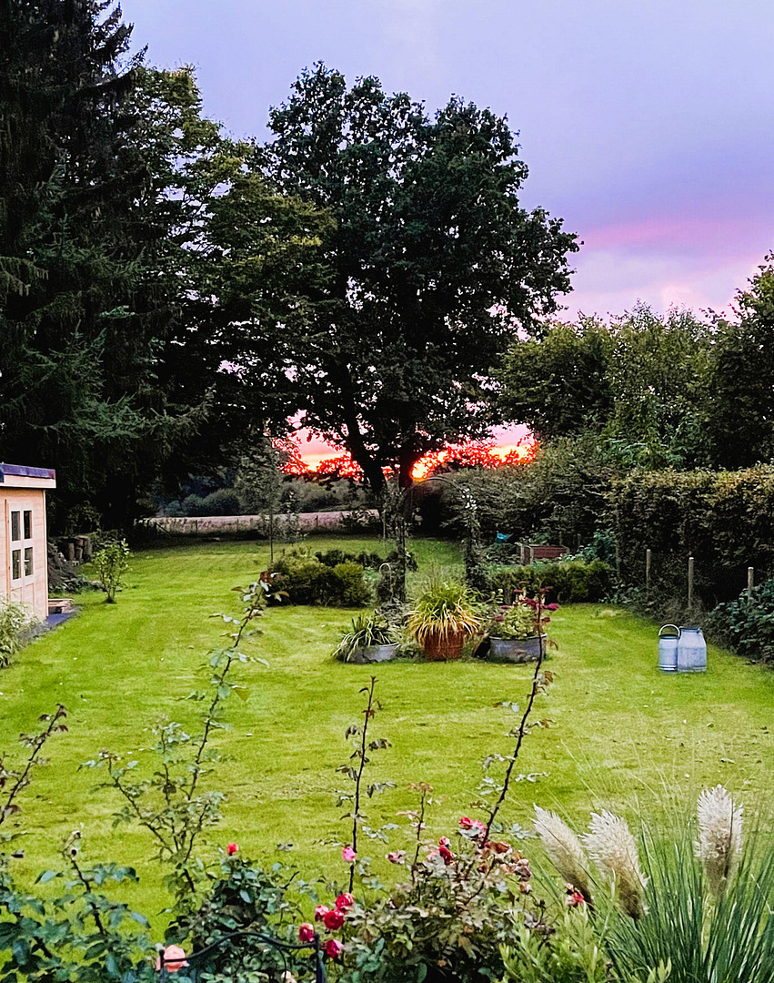 Fruit trees, separate vegetable garden, raised garden beds (2025).