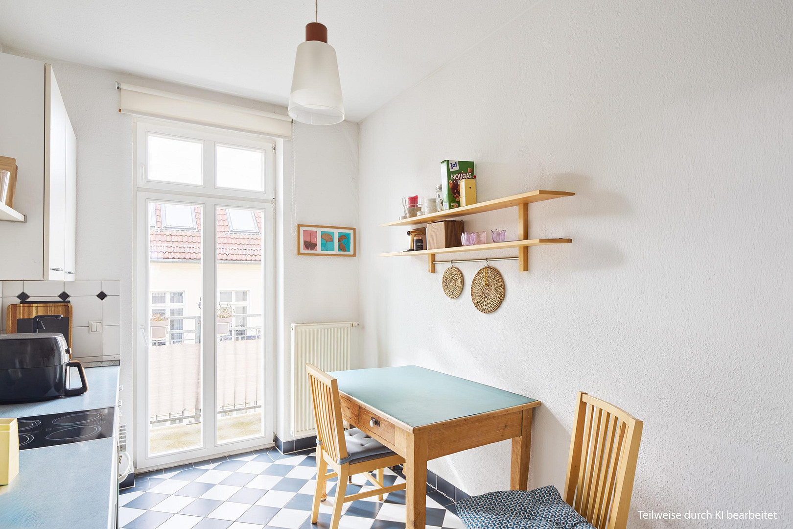 The two balconies and the layout are particularly noteworthy. All rooms are accessible separately from the hallway, and the apartment feels very bright and well-lit. Two large rooms face the street. The kitchen and another room are located on the quieter courtyard side and are connected by a spacious southwest-facing balcony. With relatively little effort, it would be possible to create a living room with an integrated kitchen here.