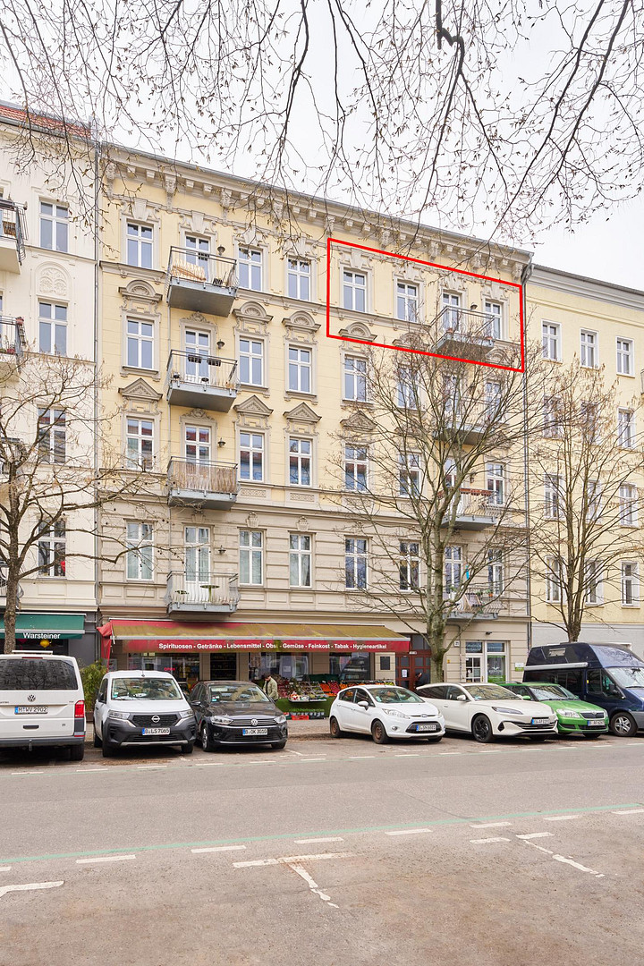 Stargarderstr. 21, 10437 Berlin (Prenzlauer Berg)This bright 3-room apartment, with approximately 95 square meters of living space, is located on the 4th floor of a renovated Art Nouveau building in the Prenzlauer Berg district of Berlin. The building was extensively renovated in 2004 and divided into individual apartments. The apartment is currently rented, and the existing tenancy agreement is protected by a nine-month notice period. The rental income is €1040 (as of March 2026, based on the 2024 rental market rates).
