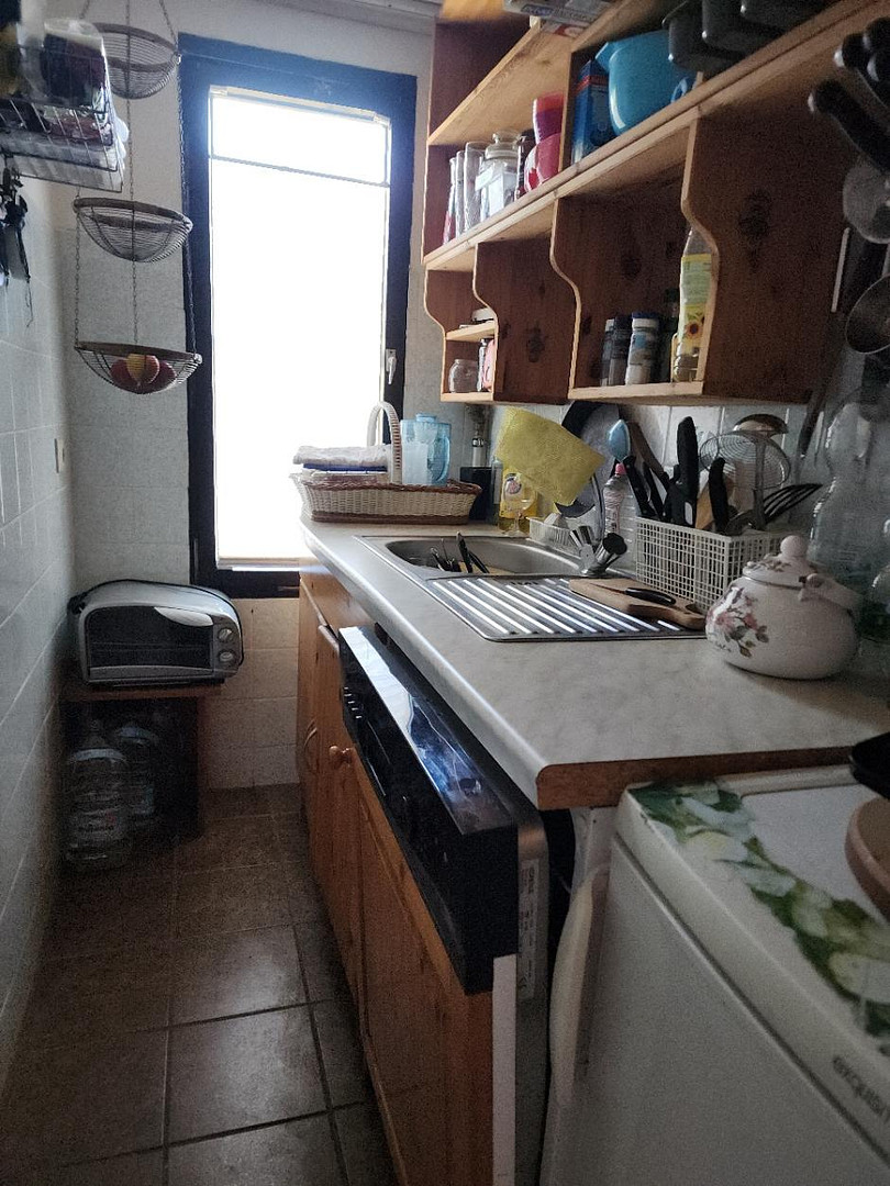 WC with shower, furnished kitchen, bedroom, living room, hallway.