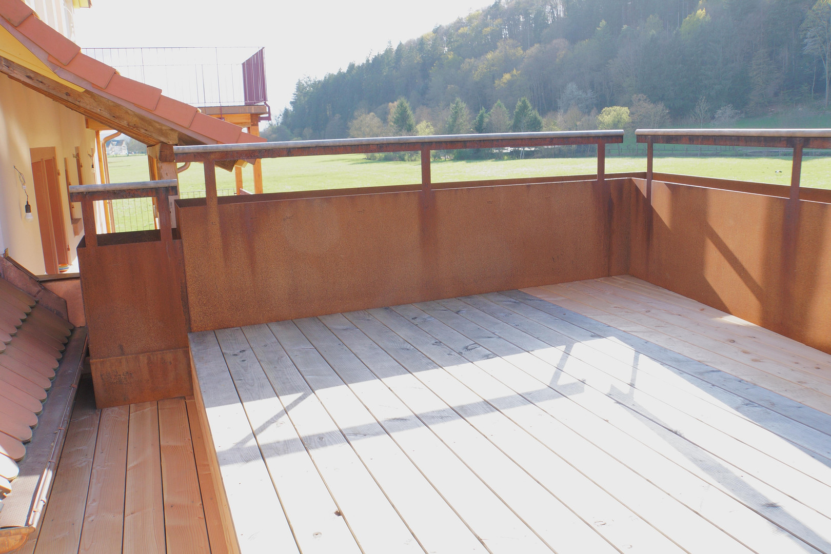 Wassergäßle 3, 79350 Sexau – Baden-WürttembergA farmhouse dating back to 1899, lovingly restored in 2026 and extended with large balconies open on three sides. Ideal for couples, families, or even a shared living arrangement, this property offers spacious rooms and high-quality finishes, appealing to those who value ecology and enjoy living in a green environment while still being just 15 minutes from Freiburg. Highlights include the renovated attic and the balcony adorned with shrubs and perennials. The apartment, spread over two floors in a quiet location, is also perfectly suited as a home office. It's easy to relax in nature, by the village stream, at the water feature, or on the barefoot path, all within close proximity. It offers views of the open fields and the Hornwald forest. The property features two living rooms, two additional rooms, two bathrooms with walk-in showers (one with a bathtub), and a kitchen with genuine travertine flooring, as well as gas and electricity connections for cooking. It's also designed for accessibility: the apartment is largely barrier-free on every floor. Eco-friendly residential complex